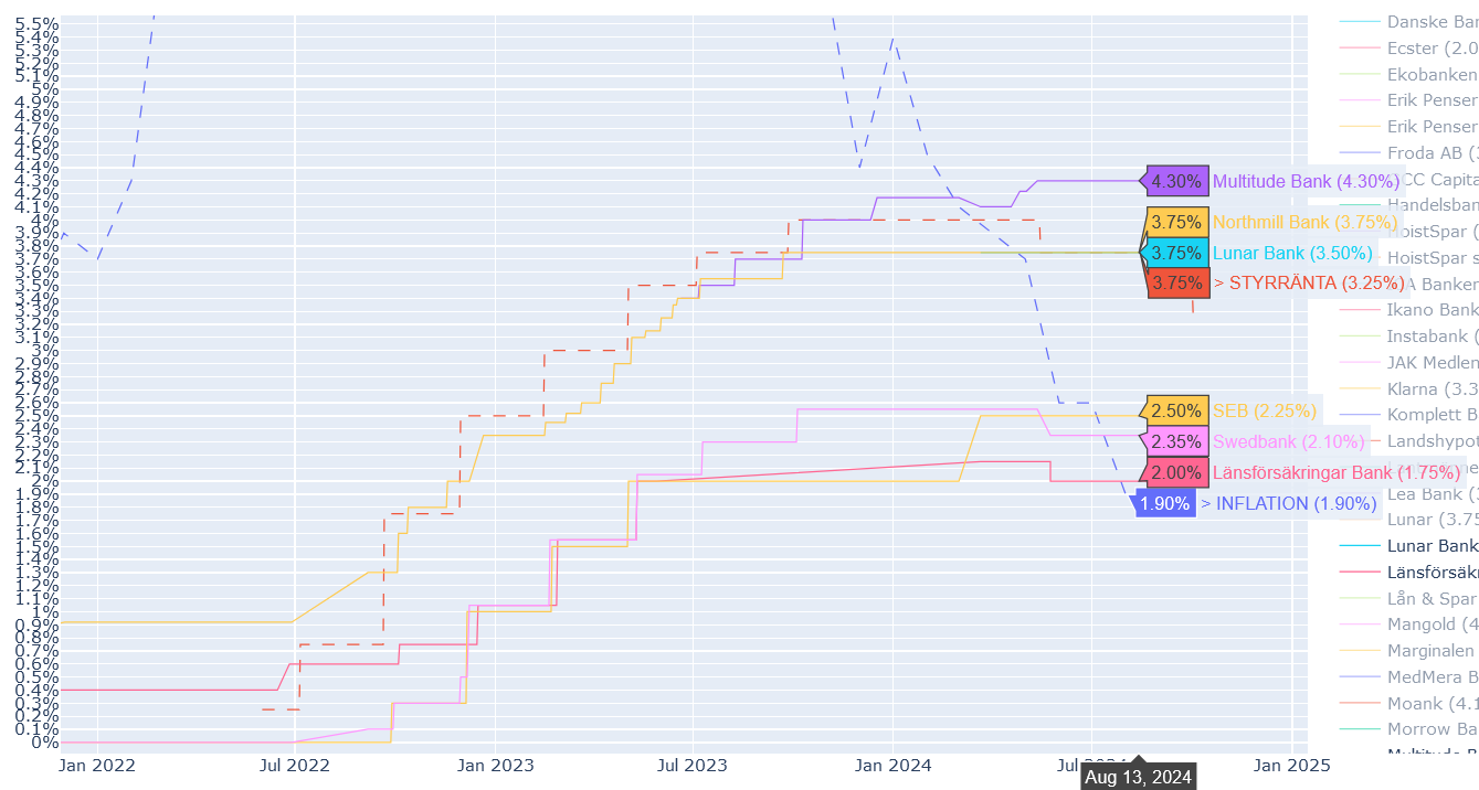 Det är intressant att man kan notera trenden att “alla” höjer. Och jag tänker också att om ens “egen” bank inte är i toppen längre, men inte har höjt än, så kanske man vill avvakta någon dag innan man flyttar alla sina slantar. Har banken dock redan höjt, men inte kommit så högt, kanske det är dags att gå vidare?