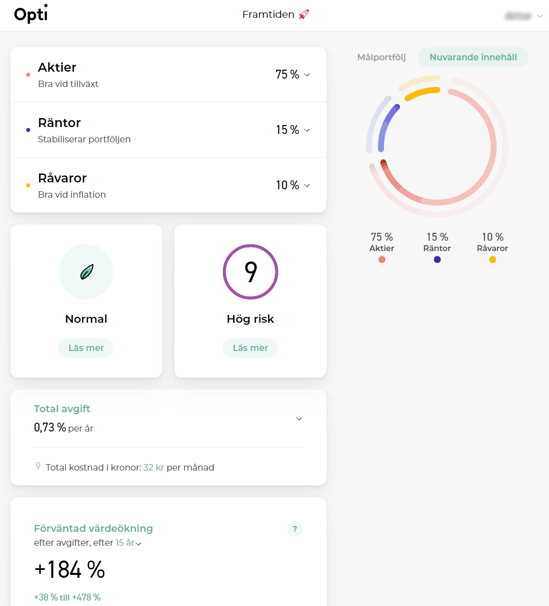 Mitt första månadssparande började med just Opti på risknivå 6 första året och då låg jag ungefär på -8% men avvaktade tålmodigt trots det. Sedan 2 år tillbaka så har jag ändrat till nivå 9 istället då jag insåg att jag inte skulle göra några uttag på många år i alla fall och idag ligger jag på +8% istället sedan start och +16% på 1 år grafen.