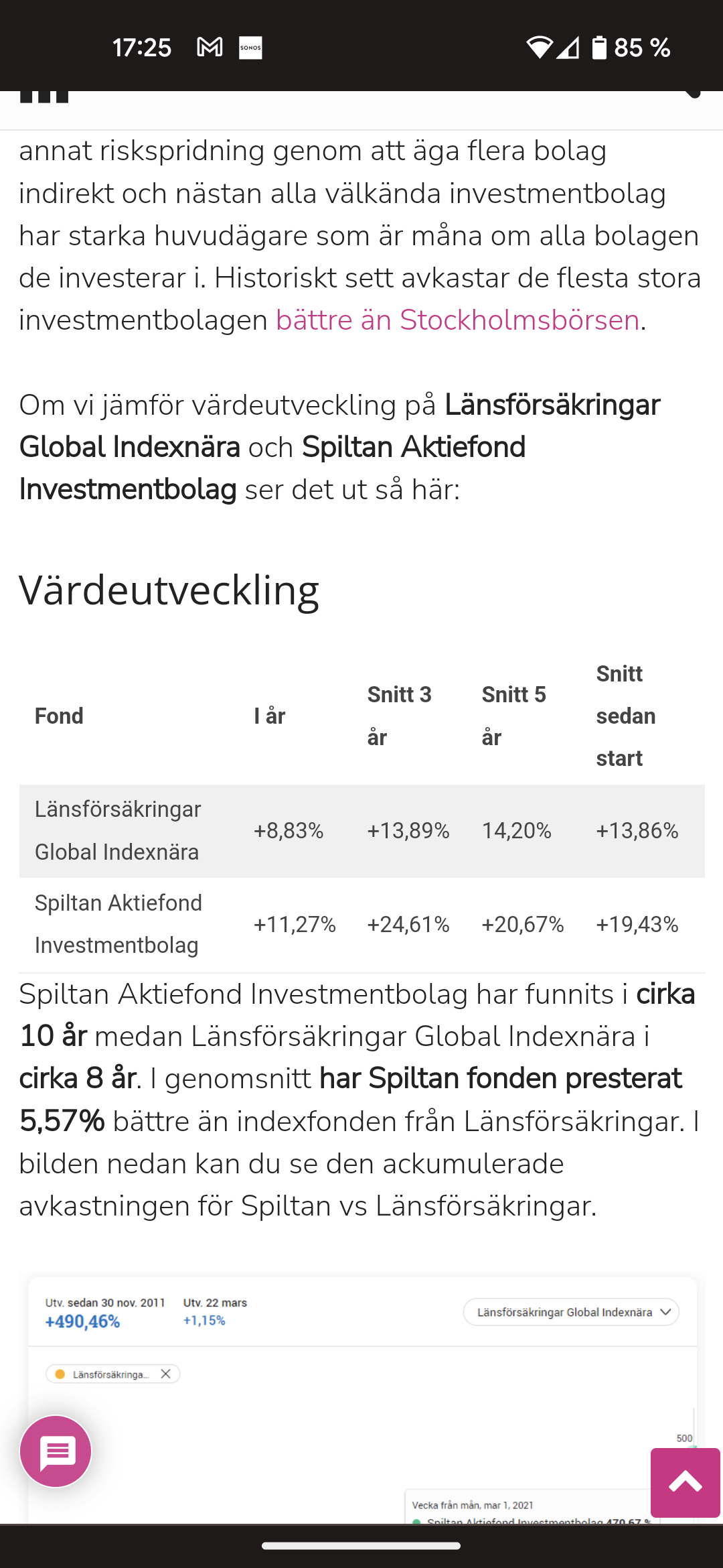 Spiltan Globalfond Investmentbolag är en bättre jämförelse och den har både underpresterat och överpresterat globala indexfonder de senaste åren.
