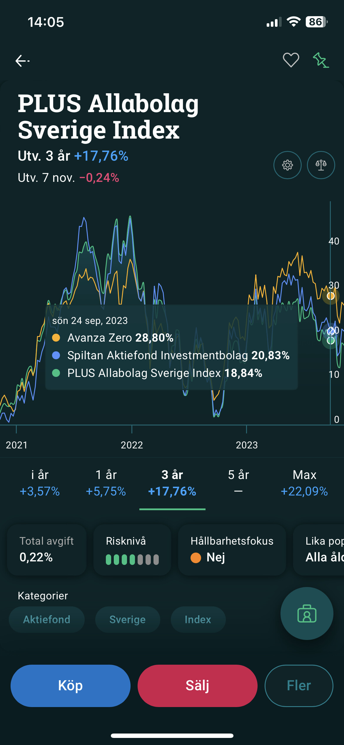 Jag har 5% Spiltan och 10% SEB Sverige Indexnära i aktiefond-delen av min Mellanhink.