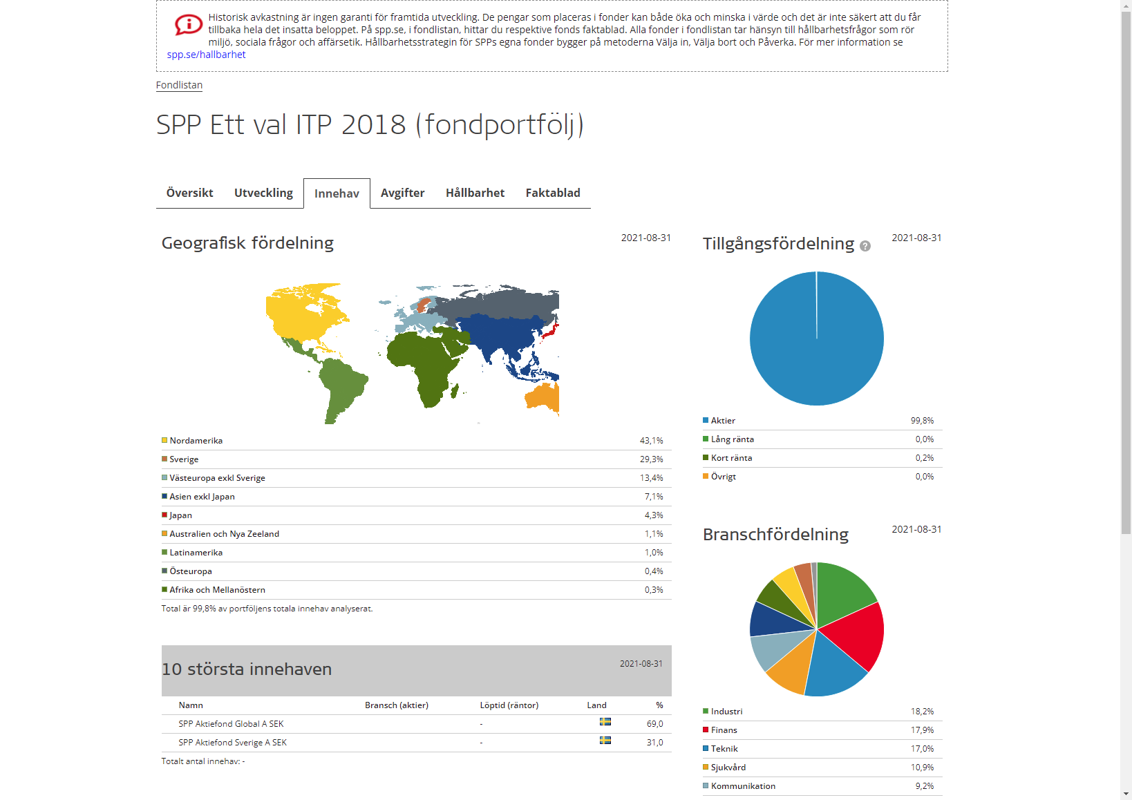 Har förmodligen lite otur när jag tänker, men när jag researchar så upplever jag att vissa av deras delar är ju riktigt bra. T.ex. den här ITP Entrelösningen på 0.13 % i avgift är helt okej. Sedan kan vi ju alltid diskutera en exponering om 30 % mot Sverige enligt tidigare trådar, men det är ju inte dåligt. Liknande lösningar finns ju för ITP2 m.fl.