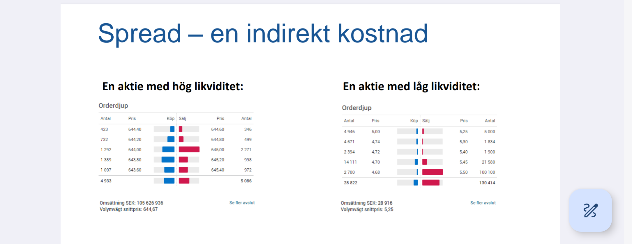 Ja jag kan ha missförstått! Men när det gäller en aktie kan man ju kolla orderdjupet för att få ett hum om den är mer eller mindre lätt att sälja. Tänkte att det var svårsålt om det inte finns så många ägare, men i efterhand tänker jag att man förmodligen inte bara säljer till alla på Avanza utan alla på hela marknaden?