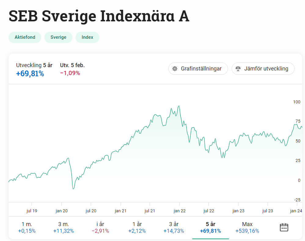Jo fonder i SEK har absolut fått en skjuts av att SEK gått ner i värde men även amerikanska indexfonder och ETFer är upp 80% på fem år, precis som de svenska.