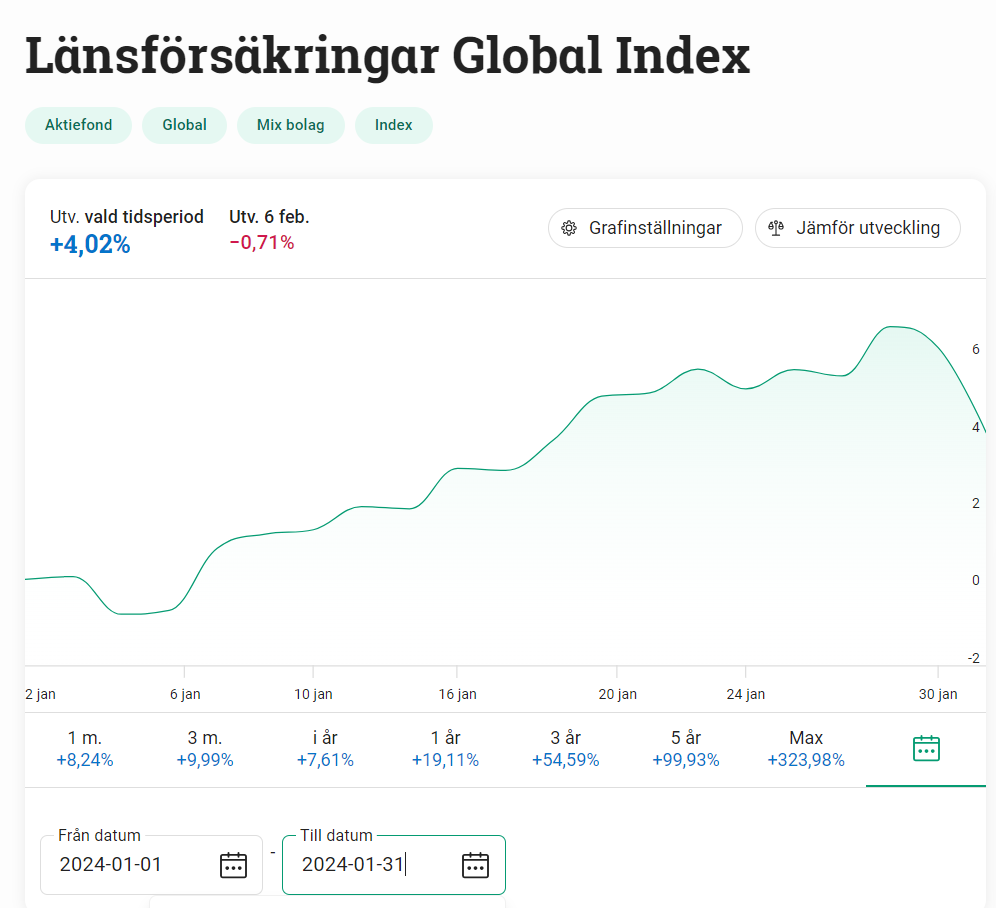 Du borde alltså istället jämföra med LF global index t.ex. som gick upp ungefär 4% i januari, du var bättre än den också! Men det är mer rättvist att jämföra med.