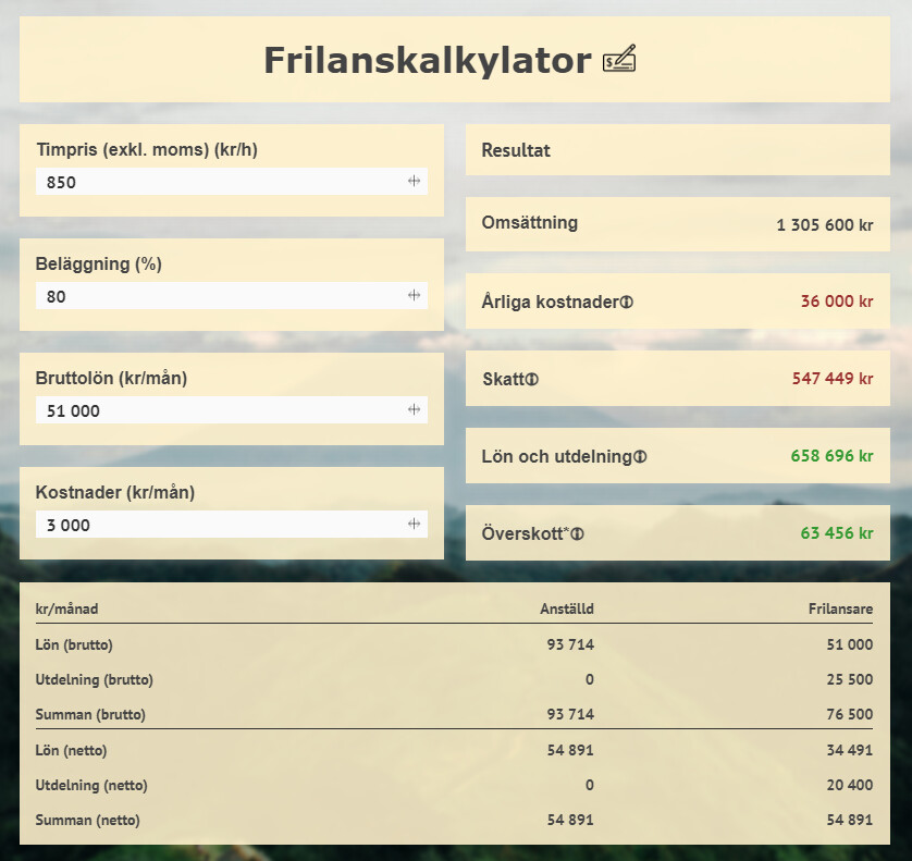 Bra jobbat och jag förstår bakgrunden och att den är “optimerad”. Det jag saknade i den var dock att jag inte lyckades välja en lön över maxbeloppet i räknaren. Default kanske det är bäst, men kanske bra om man kunde klicka i en check-box och få möjlighet till större löneuttag.