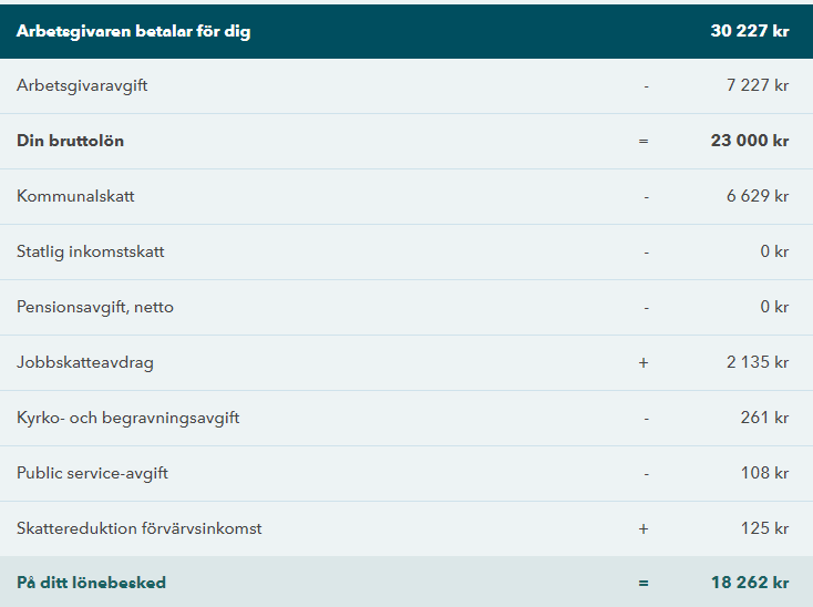 Om vi leker med tanken att du fakturerar 30tkr årligen som lön får du följande intäkt / kostnad.