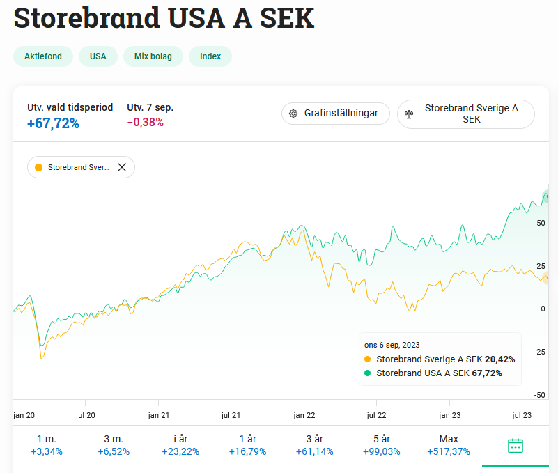 Över tid så har Sverigeindex presterat bättre än USA-index.
