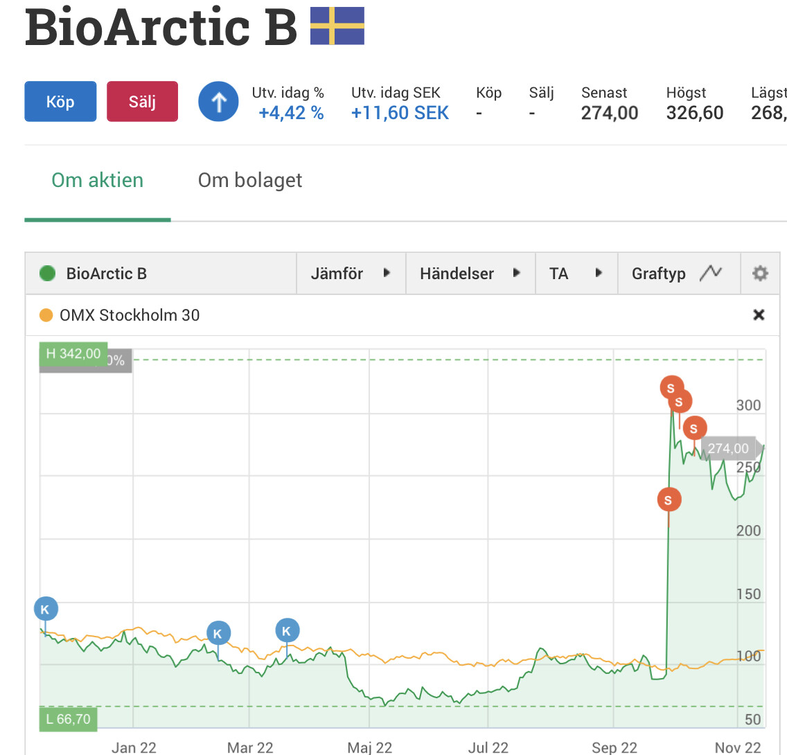 Bioarctic har gått bra det senaste. Ligger i min ”högriskportfölj” (Bolmeslingo: ”lekhink”). Drygt 120 %. Firade med att köpa något annat som som säkert hamnar i LossPorn-tråden.