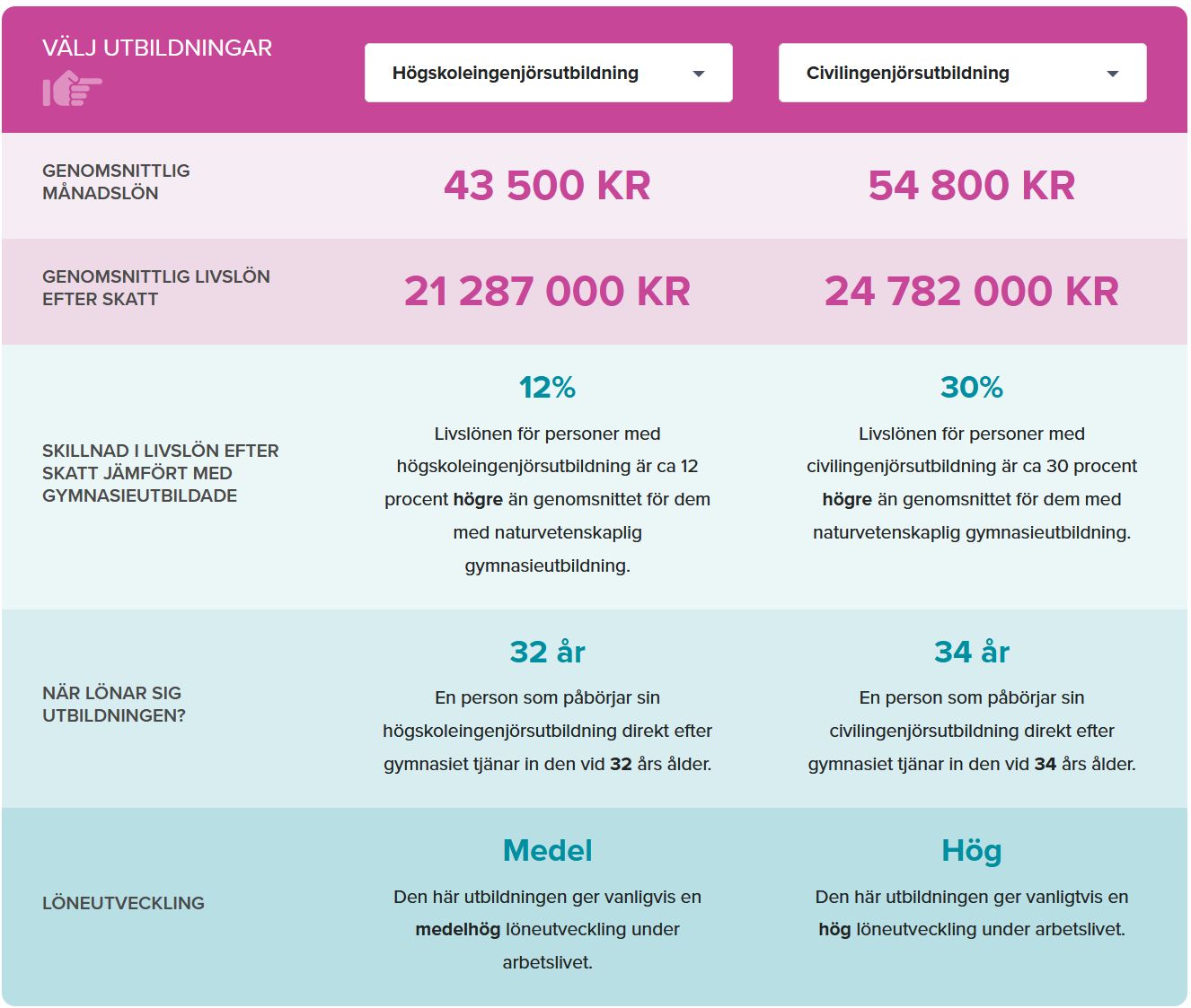 Hur hade ni resonerat i min situation, är det ”dumt” att plugga till civilingenjör? Kanske högskoleingenjör. Men inte lika roliga inriktningar.