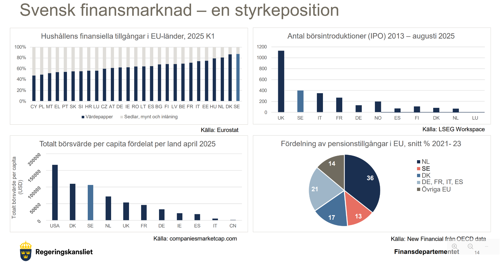 - Svenskar är bäst i EU på att låta pengarna jobba istället för att ha dem i madrassen. Det hjälper våra företag att finansiera sig (grafen uppe till vänster)