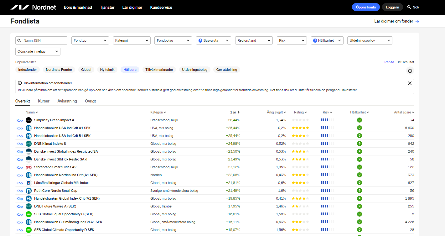 Gäller Swedbanks utbud, kan kolla vad den säger om Avanza.