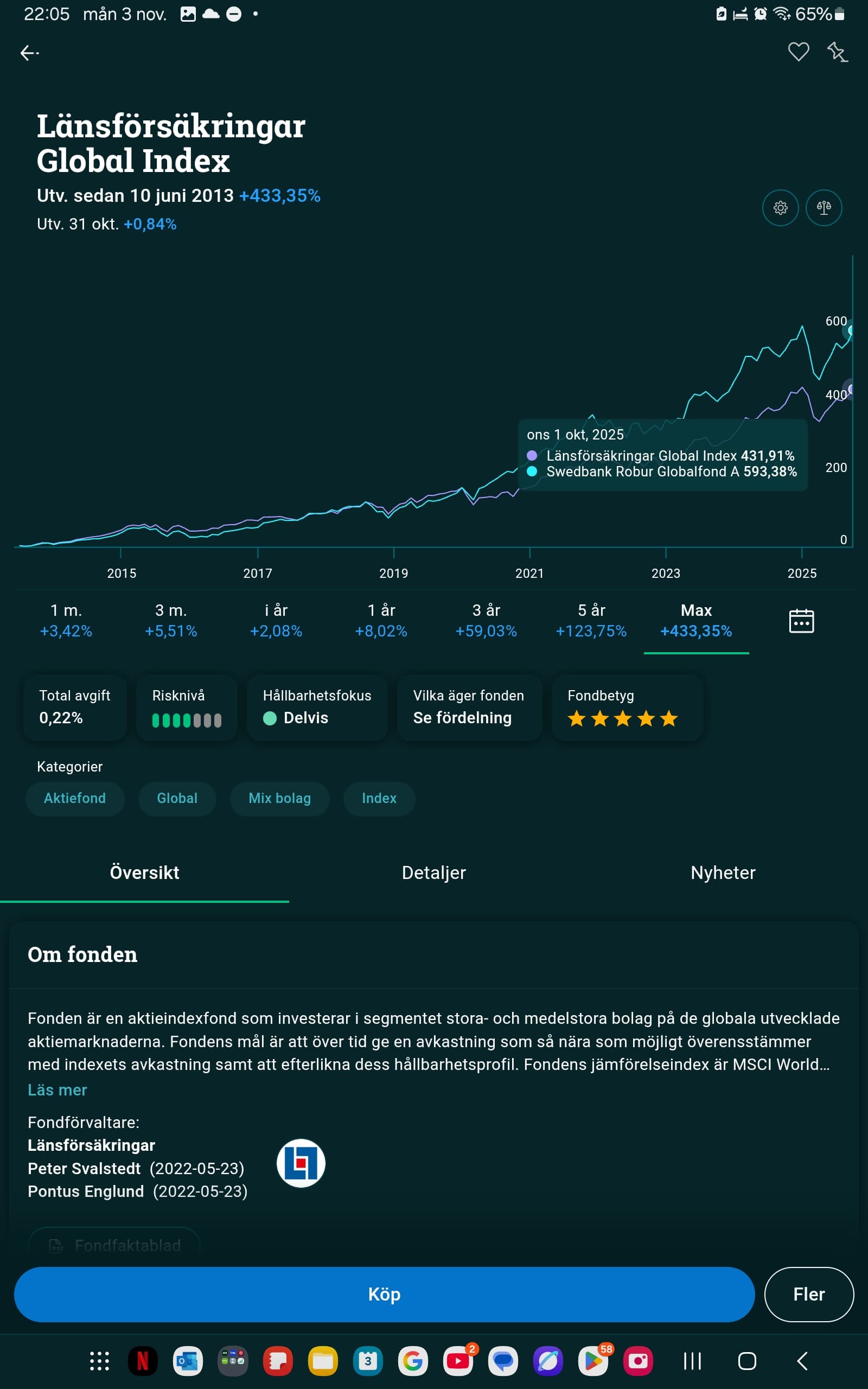 Sedan tycker jag nog det är lite fel och kalla hela lf global index livstid för en liten period. Om det är det är ju fonden osäker eftersom den bara gått bra en liten period