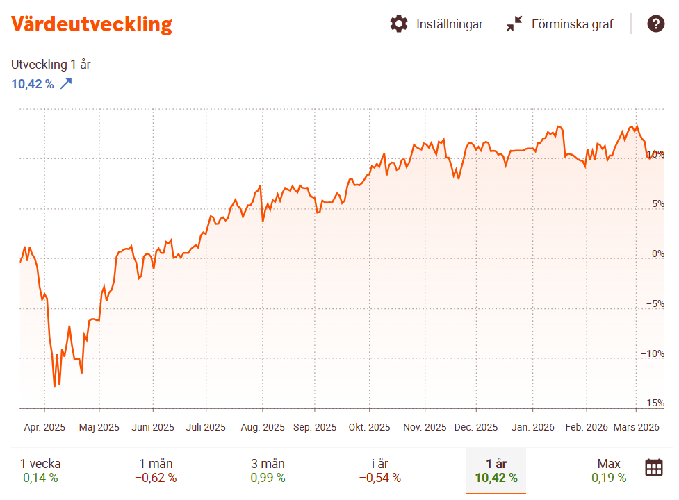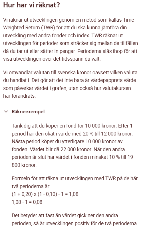 Innan senaste bytet visade grafen faktiskt värde beroende på datum men nu ser jag att de har bytt till procentuell utveckling. Likt exempel nedan. Någon som vet varför de har sådan beslutsnojja?