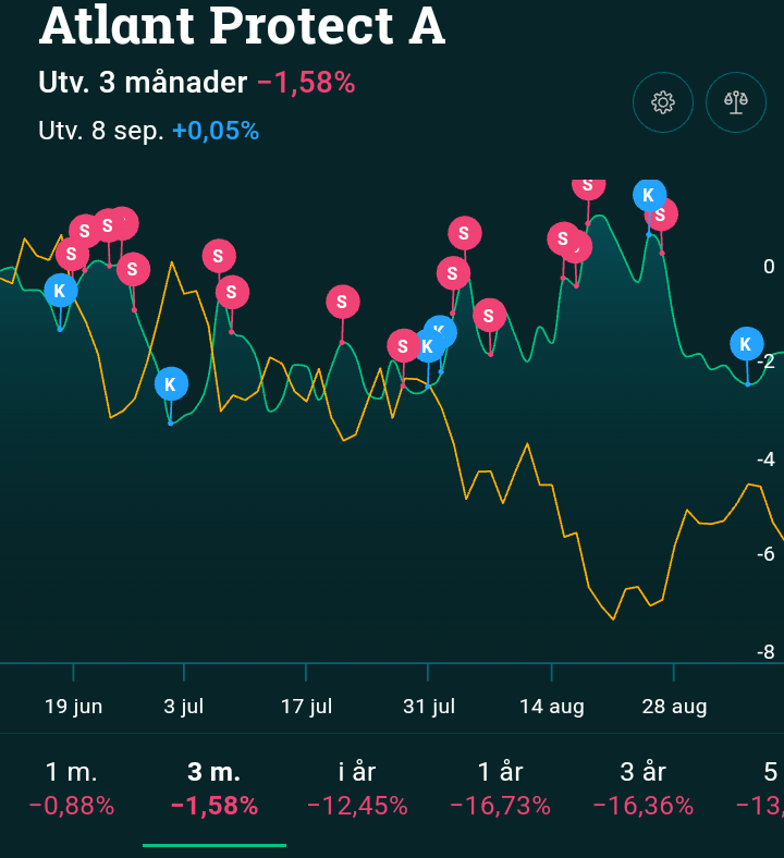 Det ska inte gå att tajma marknaden, än mindre varje dag. Vilket jag nästan lyckas med. Är 3 månader på bilden men månaderna innan tajmar jag rätt också. (Har också en annan trading strategi som slog index med 12% på 2 år, konstant varje månad.) Ett misstag jag gjort var 24e augusti, ett köp som jag ångrade dagen efter, därmed blev det ingen förlust.