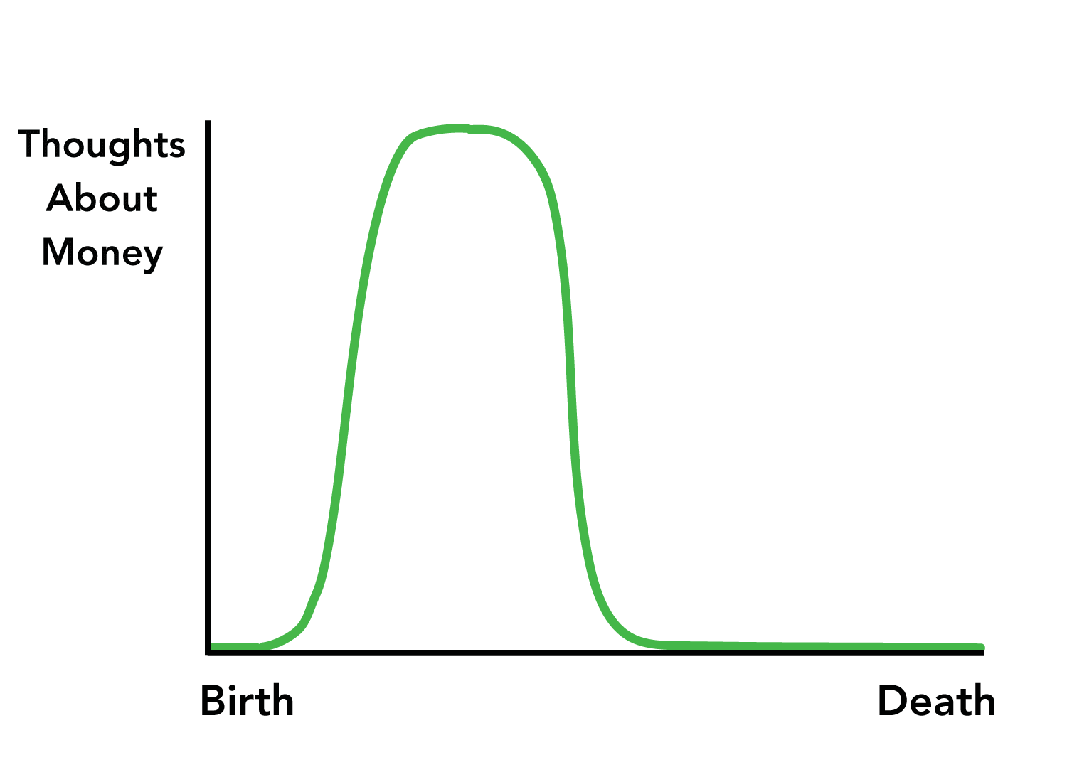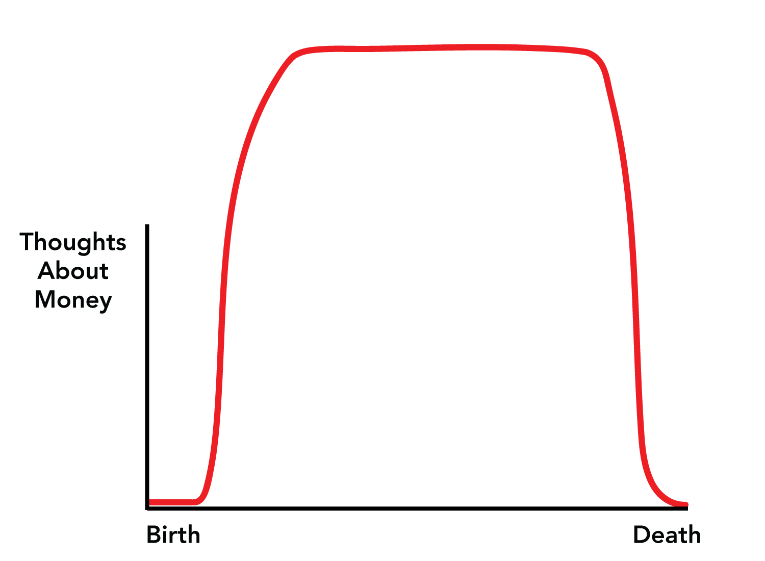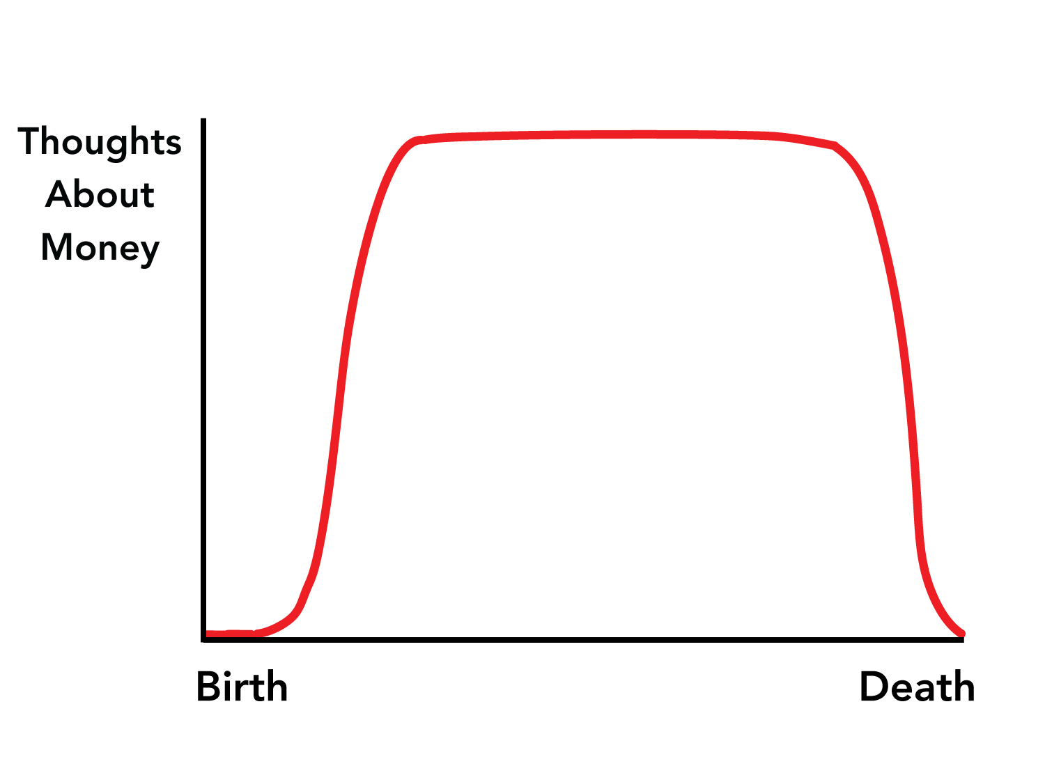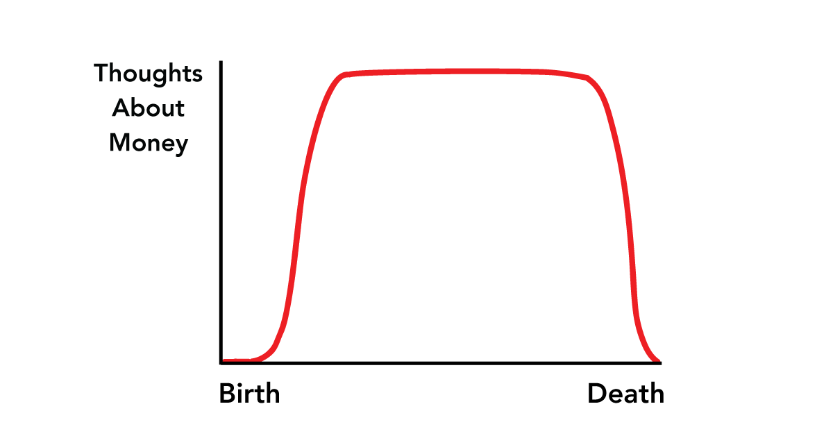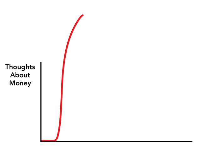 Tyvärr tror jag tankar-om-pengar kurvan mer ser ut som nedan för många, inte bara de som har lite för lite pengar utan även de många som har mer än nog.