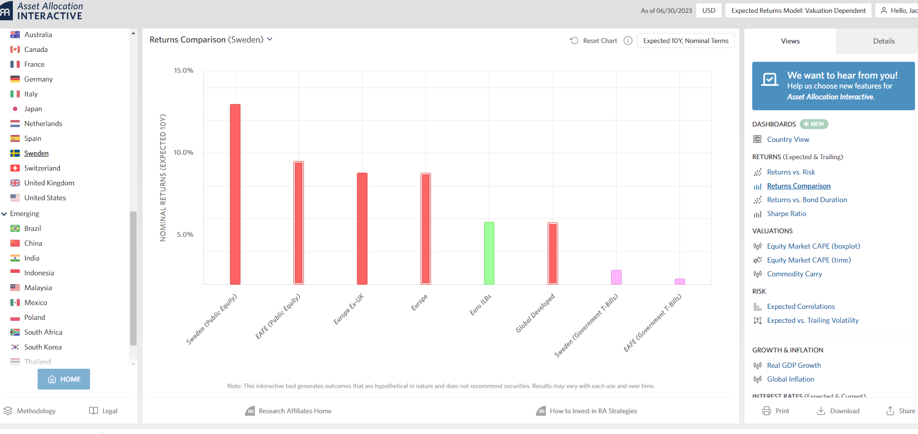 Hej igen, @Andre_Granstrom Tack för tipset. Jag har nu testat lite runt på RA appen. Kunde man inte bara kika på staplarna i nedan bild för att jämföra svensk index förväntad utveckling eller översimplifierar jag det nu?