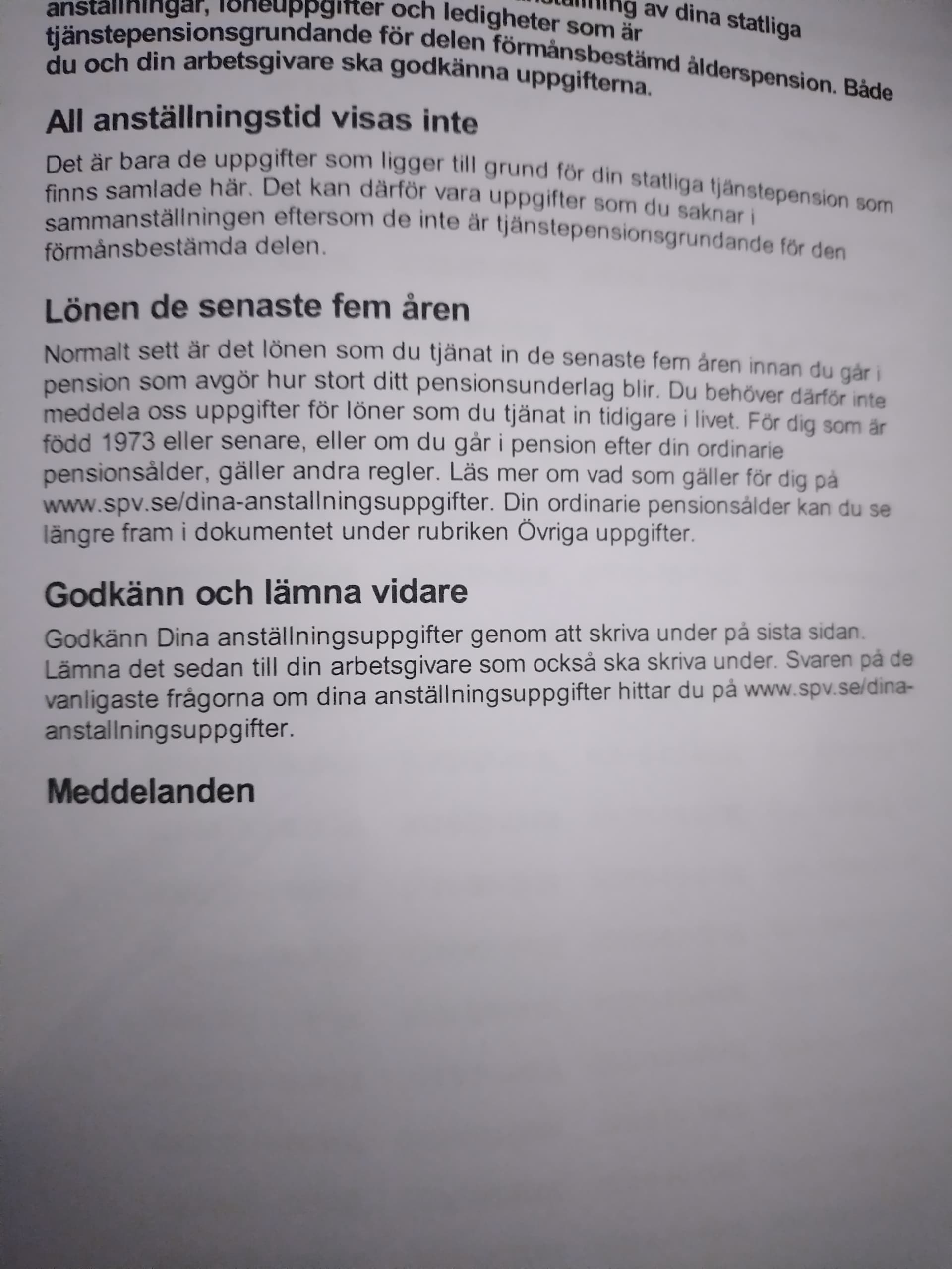 Jag är just i brytpunkt mellan statligt anställd och 100%pension så har just fått papper fr SPV för pensionsansökan. Kan meddela att utbetalningen av tjänstepensionen baseras på de sista fem åren i ditt arbetsliv… Kan vara bra bra för dig att känna till om du kanske är långtidssjukskriven eller utförsäkrad fr FK efter lång tids sjukdom…det blir alltså inte ett snitt av ditt arbetsliv…