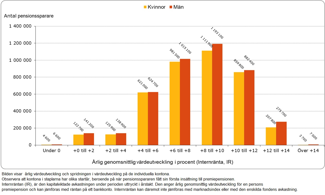 I grafen på snittavkastning finns det 11 tusen som har “Under 0” hur nu det är möjligt… Mejla gärna statistikavdelningen och be att få motsvarande sammanställning fast från botten. Misstänker att det, precis som @SNS skriver tillhör de som valt Ryssland- eller Östeuropafonder. De skrevs ner med 95% av värdet. Sen har vi alla som hade Allra eller Falcon Funds-fonder. Det finns säkert någon som haft Alfred Bergs Bear resp. Bull-fond vid fel tillfälle.