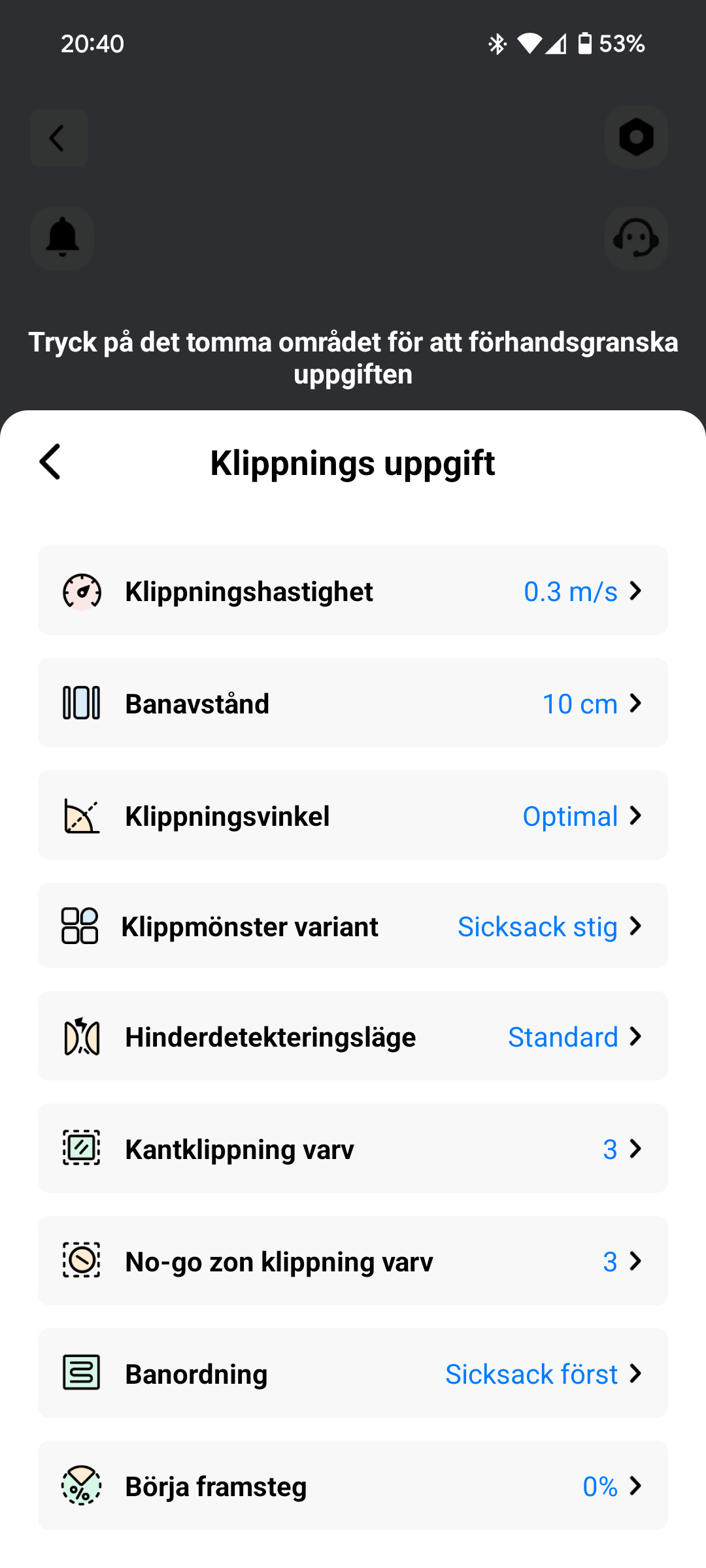Nöjd med appen hur man gör klippområden,no-go zoner och enkelt att göra justeringar i klippprogrammet