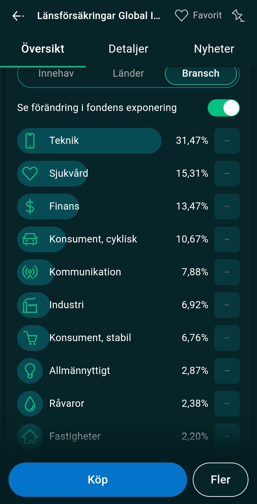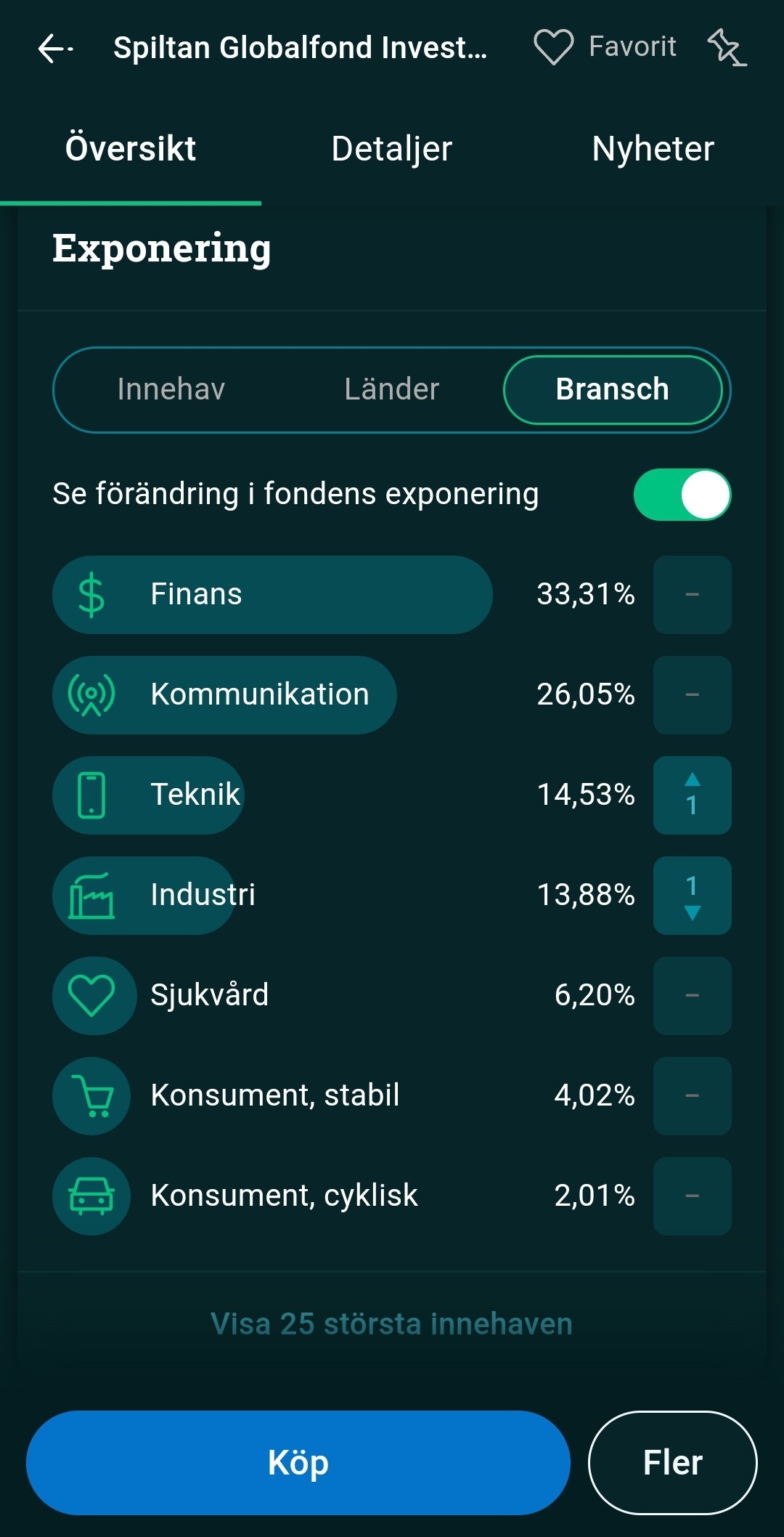Sitter och funderar på att spara i 2 olika globala indexfonder istället för 1. Det är främst länsförsäkringar och spiltan global som jag tittat på. Har i dagsläget bara länsförsäkringar men jag ser att många globala indexfonder har nästan samma uppsättning som länsförsäkringar men inte spiltan som satsar mer på andra branscher ( finans mest) i jämförelse.