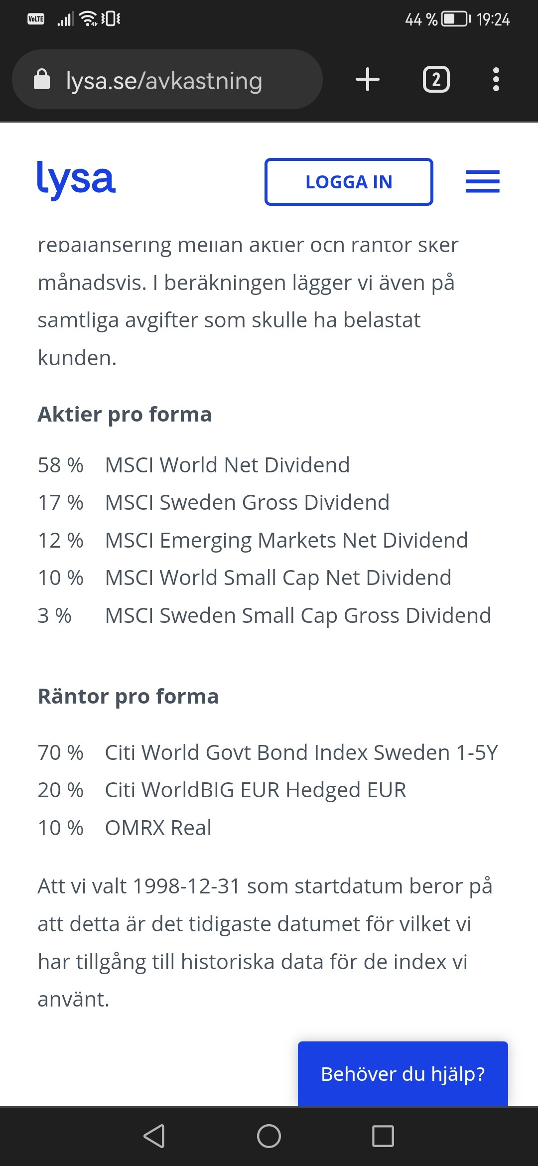 Absolut så är det ju man får fråga sig själv om man tycker lysa har gett en korrekt simulering av den historiska avkastningen. Under avkastningsfliken går det läsa hur dom har gjort den.