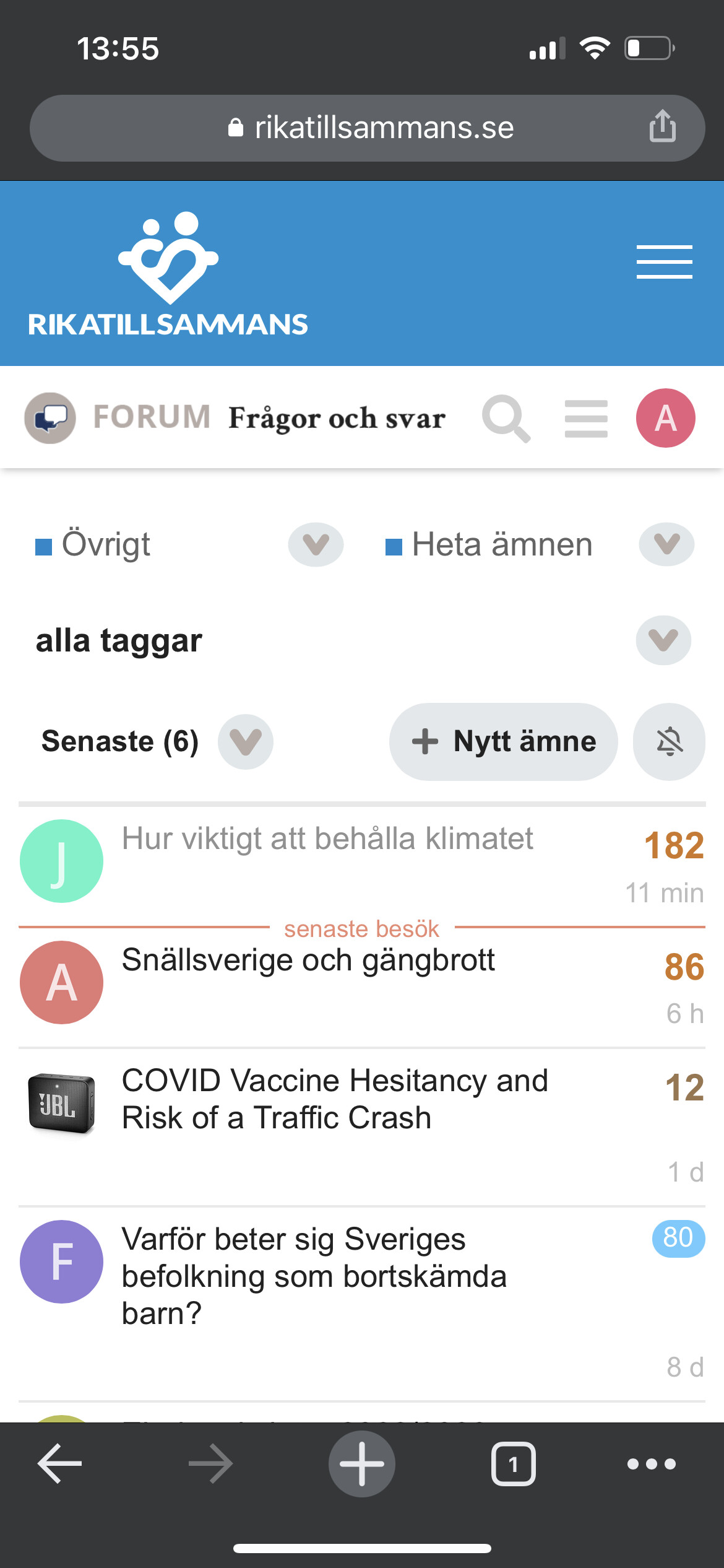 Här ser vi ett inlägg i den på startsidan trots detta.