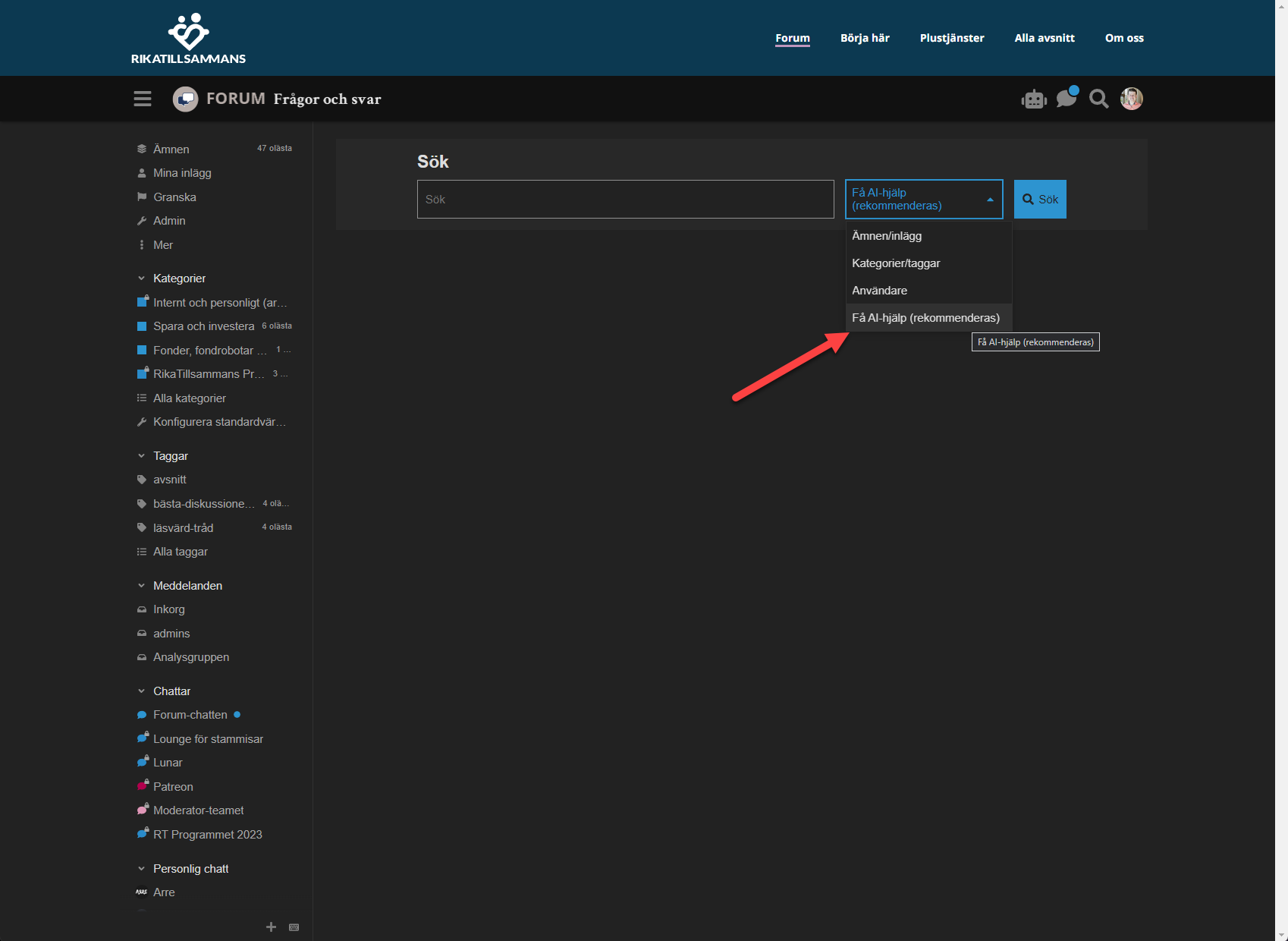 Sammanfattning av långa trådar med hjälp av AI. Just nu kan alla se när det har gjorts en sammanfattning, men den kan bara triggas av oss moderatorer och användare på nivå 3 (“regelbunden”). Just nu gör den bara sammanfattningar på engelska dock.