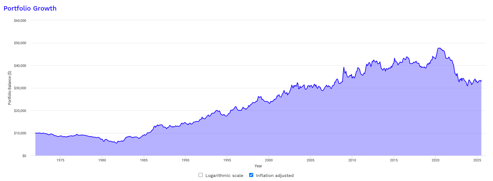 Titta noga på perioden 1972 till 1982 i grafen ovan. Då gick portföljvärdet ned ganska rejält. Sedan 1982 har räntor generellt sett gått ner över tid vilket gjort obligationer en bra investering sedan dess.
