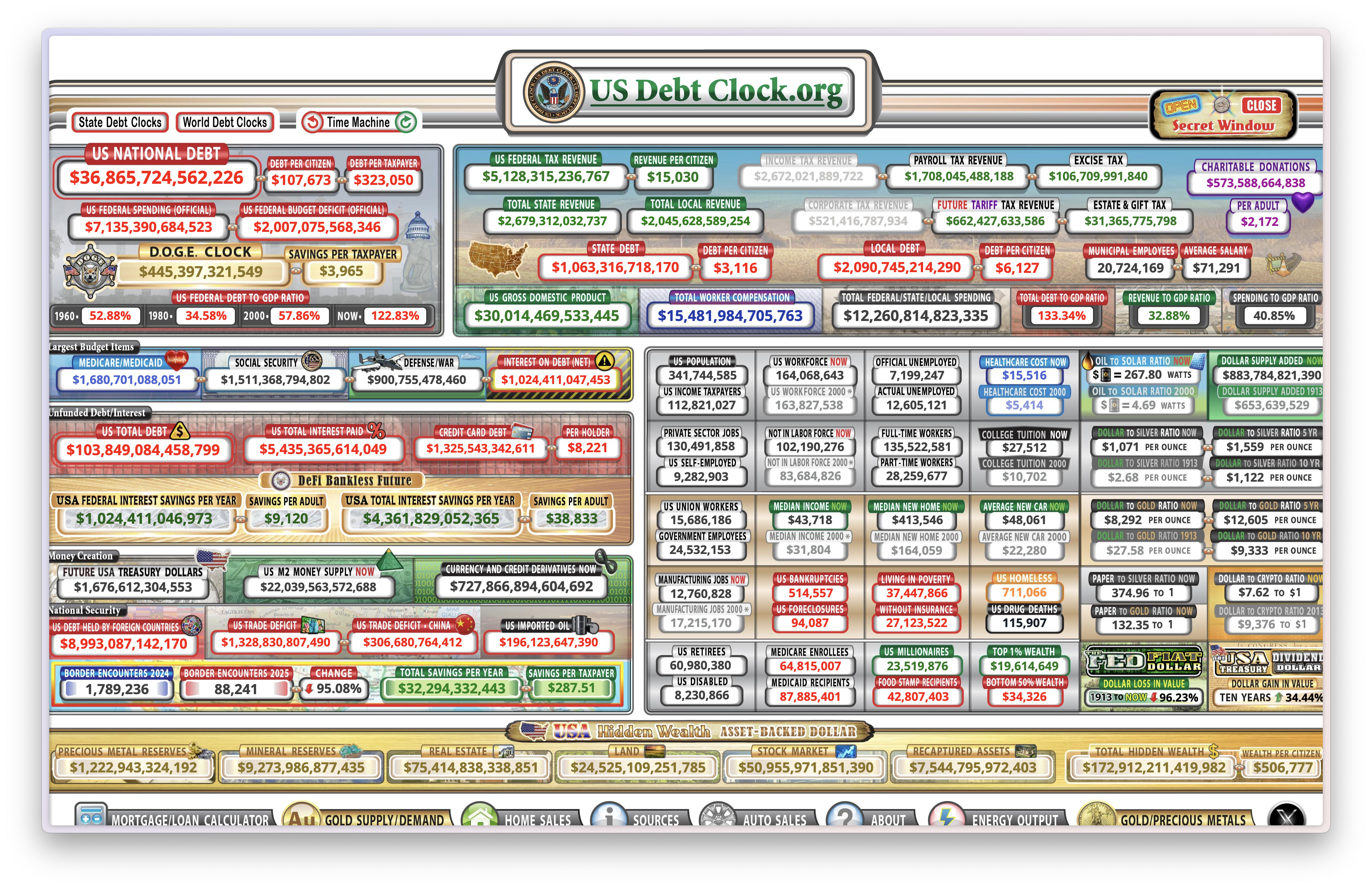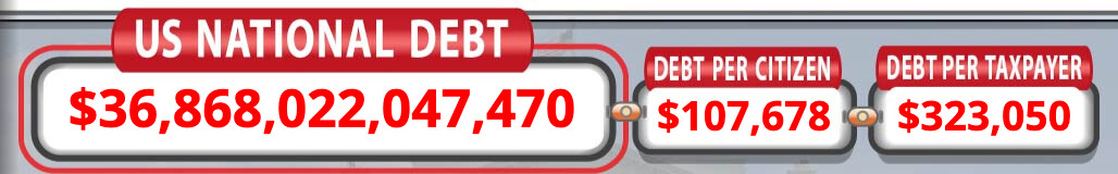 U.S. National Debt Clock är alltid intressant att kika på när det kommer till den amerikanska stadsskulden. Snart $37 biljoner. En ökning med $4 biljoner de senaste 18 månaderna.