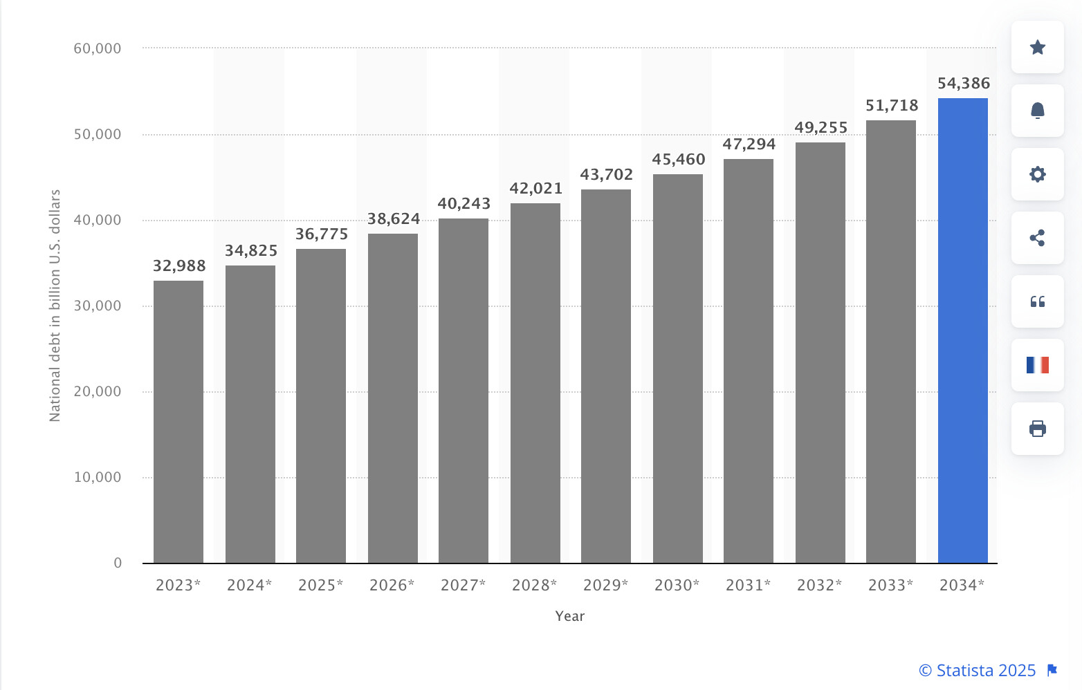 Skulden estimeras öka till cirka $57 biljoner år 2035.