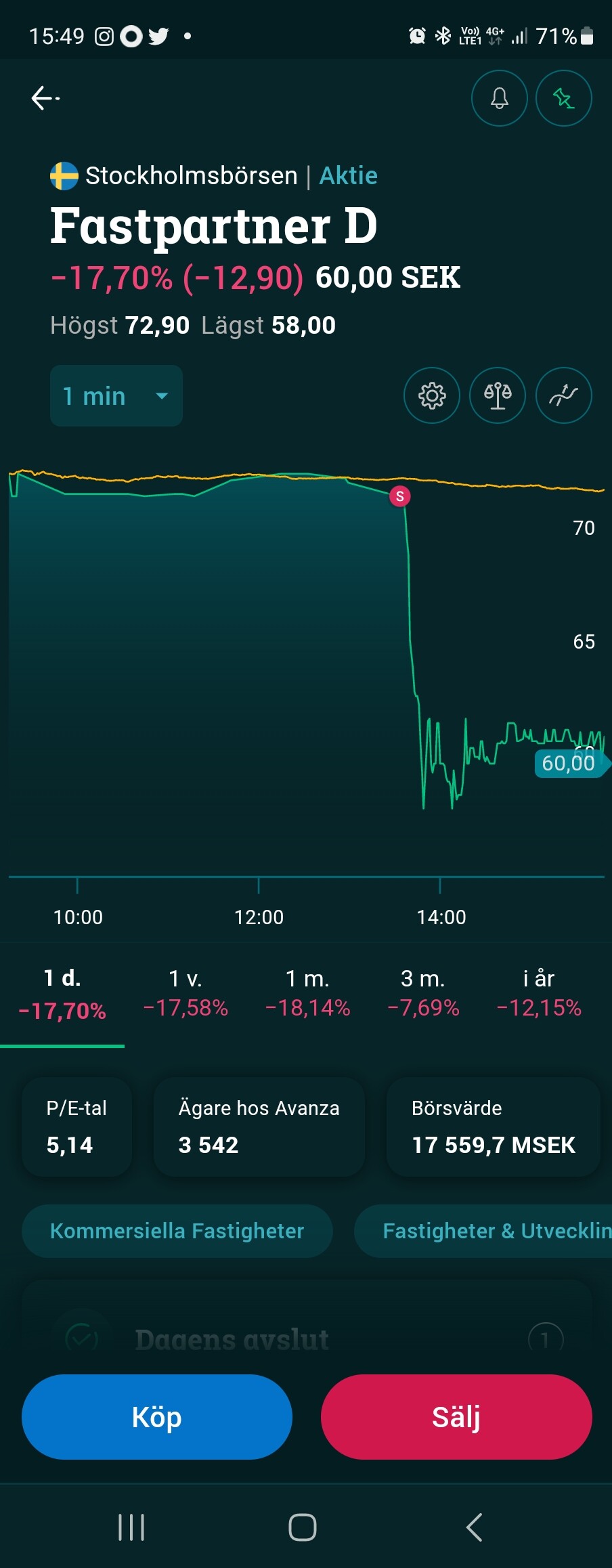 T.ex fick jag göra mig av med Fastpartner igår då de sänkte utdelningen med hälften.