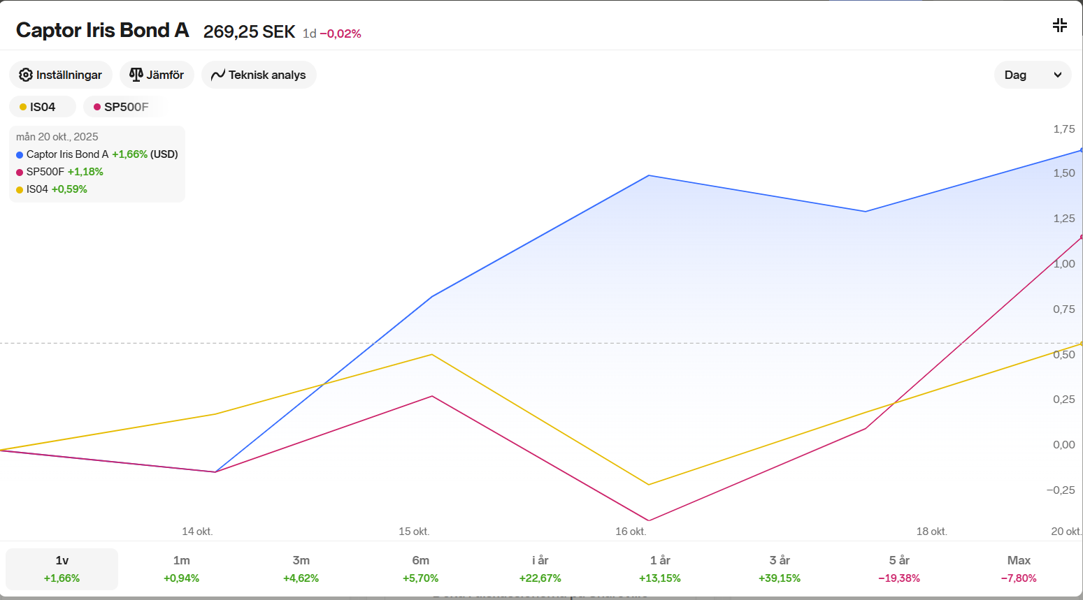 Om jag t.ex. ställer in att Captor Iris ska ha USD som jämförelsevaluta så stämmer jämförelsen med SP500 som är noterad i USD, men inte med IS04, som är noterad i EUR.