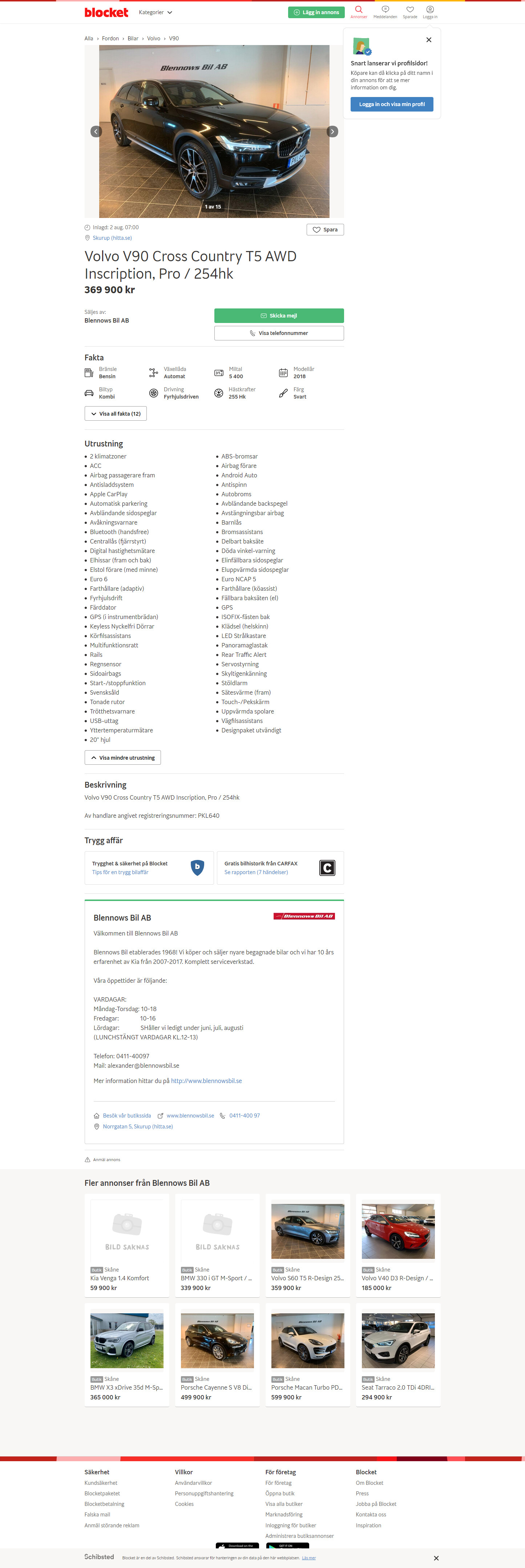 Referens för framtiden om annonsen från Blocket plockas bort för att jämföra utrustningsnivå.