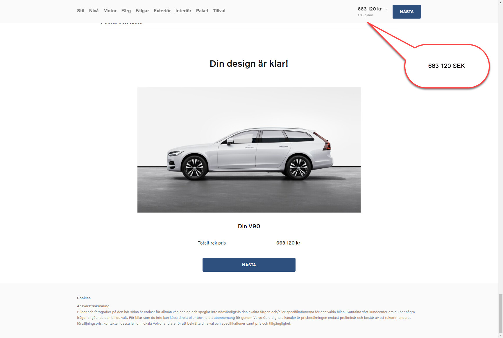 Så här ser det ut när jag klickar mig genom Volvos guide så går det att skapa en bil i den prisklassen. ![]()