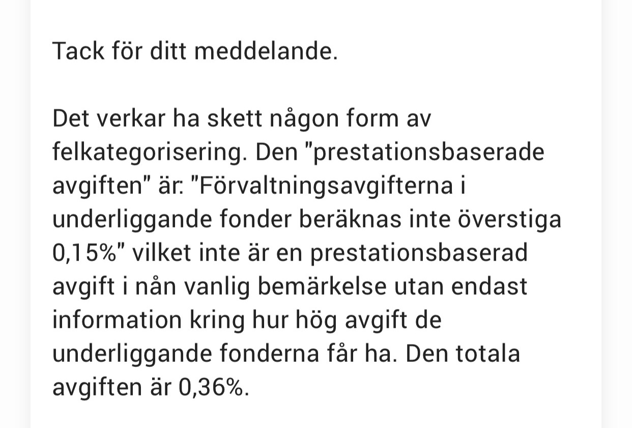 Förstår inte riktigt den där prestationsbaserade avgiften, känns som man får fråga kundtjänsten så dom får förklara.