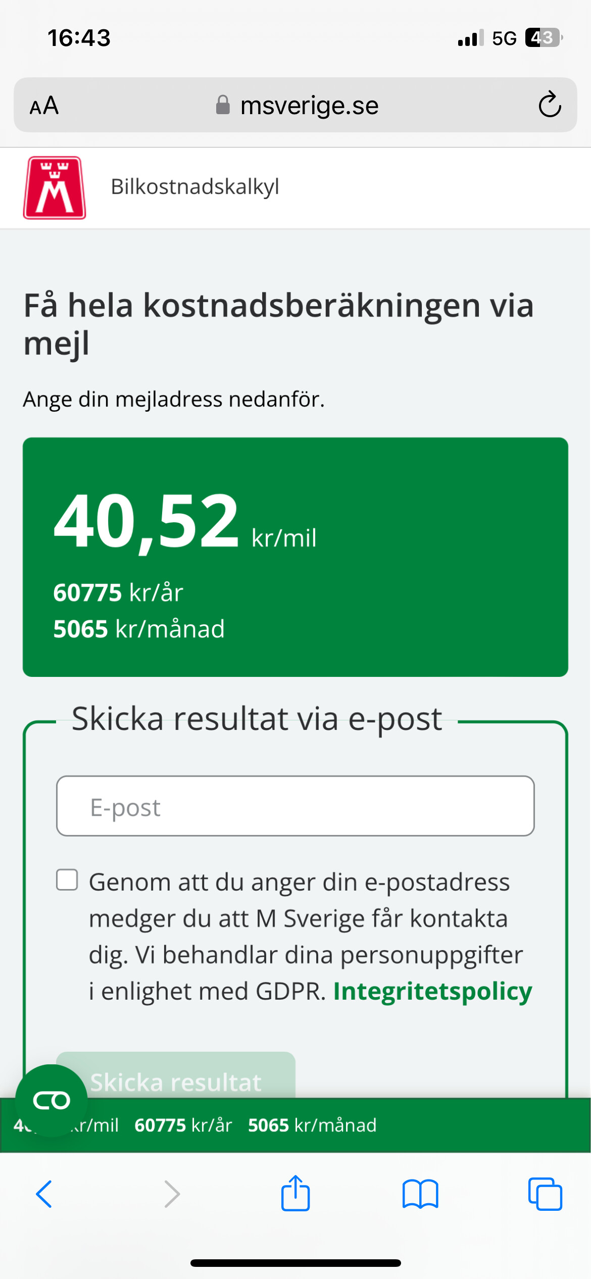 Jag har sakteligen börjat att kika på att skaffa en bil. Så jag måste hitta ett verktyg för räkna ut en så verklighetstrogen kalkyl som möjligt. Så råkade över denna.