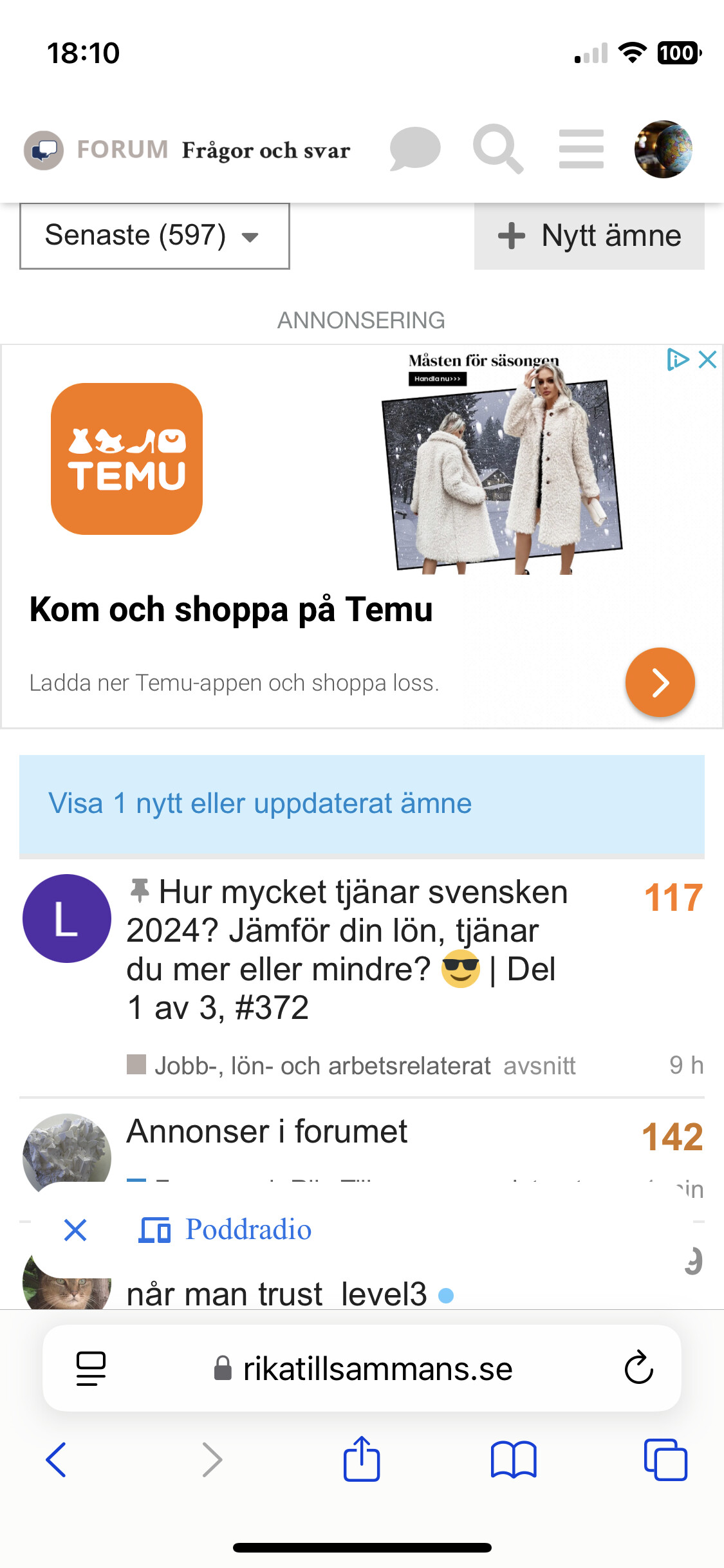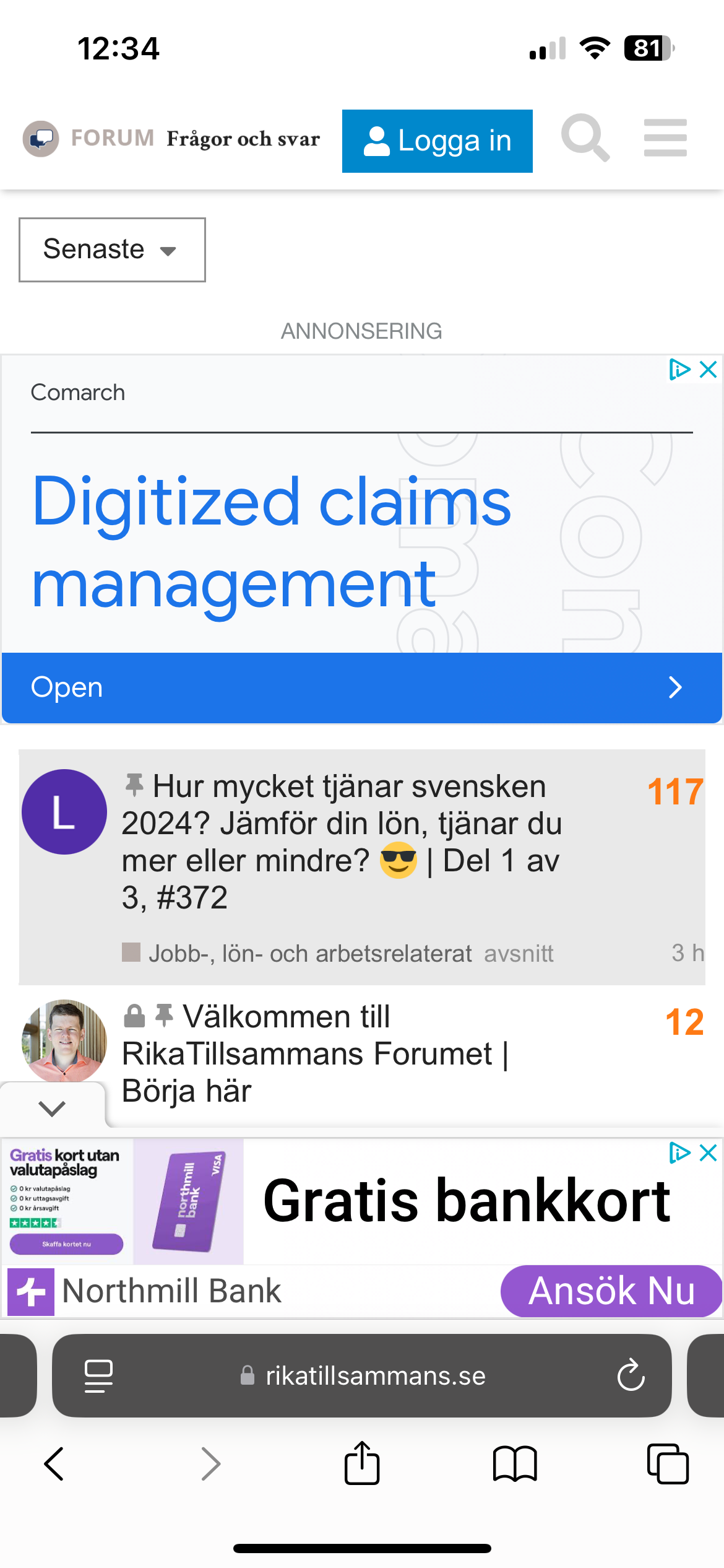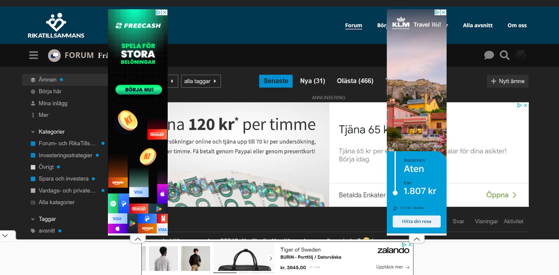 Såg ut såhär för mig i mobilen nyss, oinloggad. Jag har inga problem med reklam, men om det täcker >50% av ytan på skärmen så är det nog i överkant av vad som är rimligt.