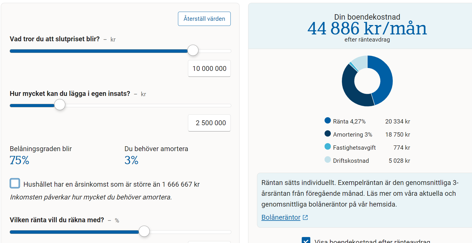 Hade nog köpt något dyrare i er sits med så mycket pengar och möjligheter. Tänk också på att amorteringen inte är en kostnad, inte heller 30% av räntorna ni betalar. Ifall ni jämkar så går du från 27k till 30k i nettolön direkt på grund av räntorna.