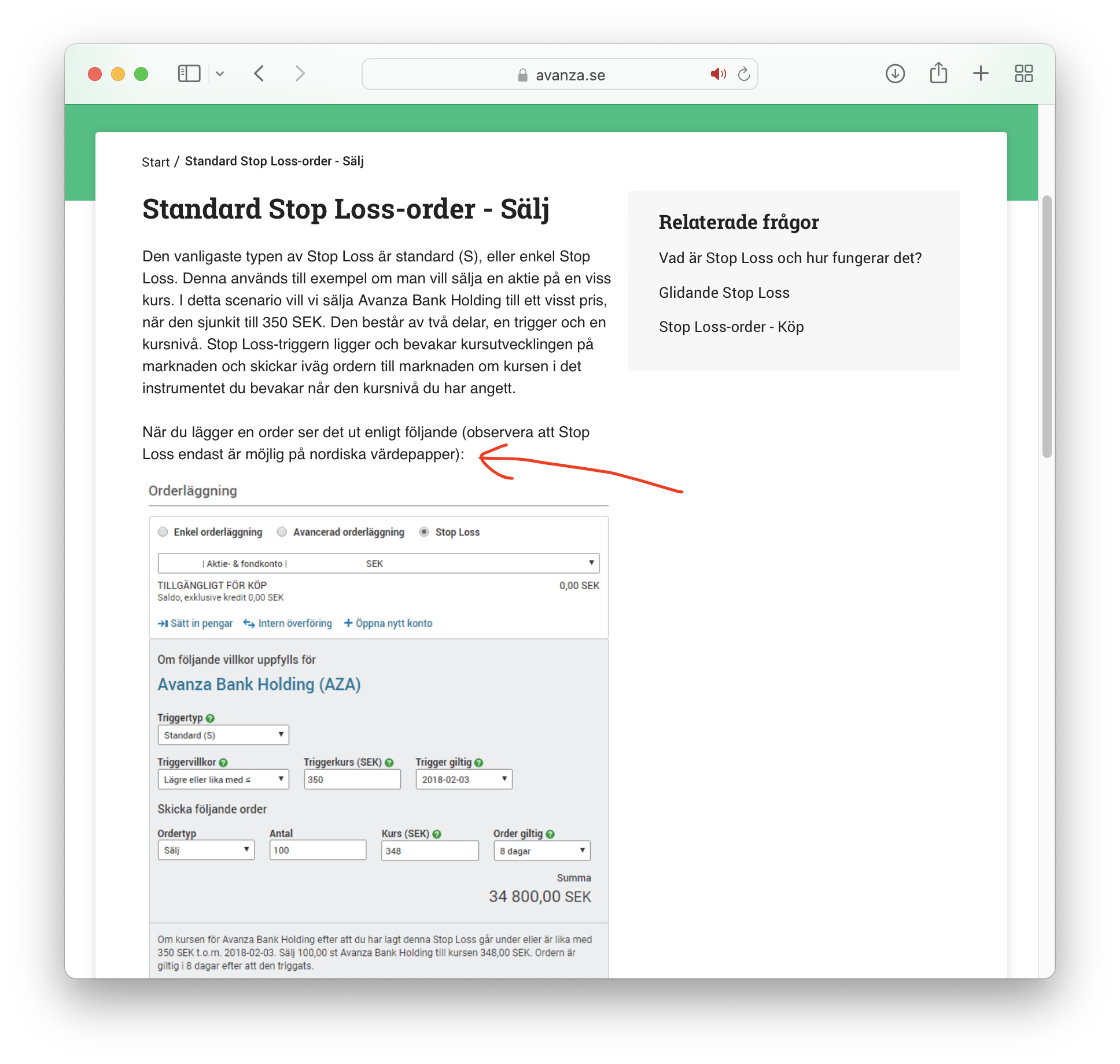 Hur lägger du en fungerande stop-loss på amerikanska aktier? Jag lyckas bara få en sådan att vara över dagen på Avanza. Vid stängning tas den bort och det går inte sätta ett slutdatum heller :frowning:.