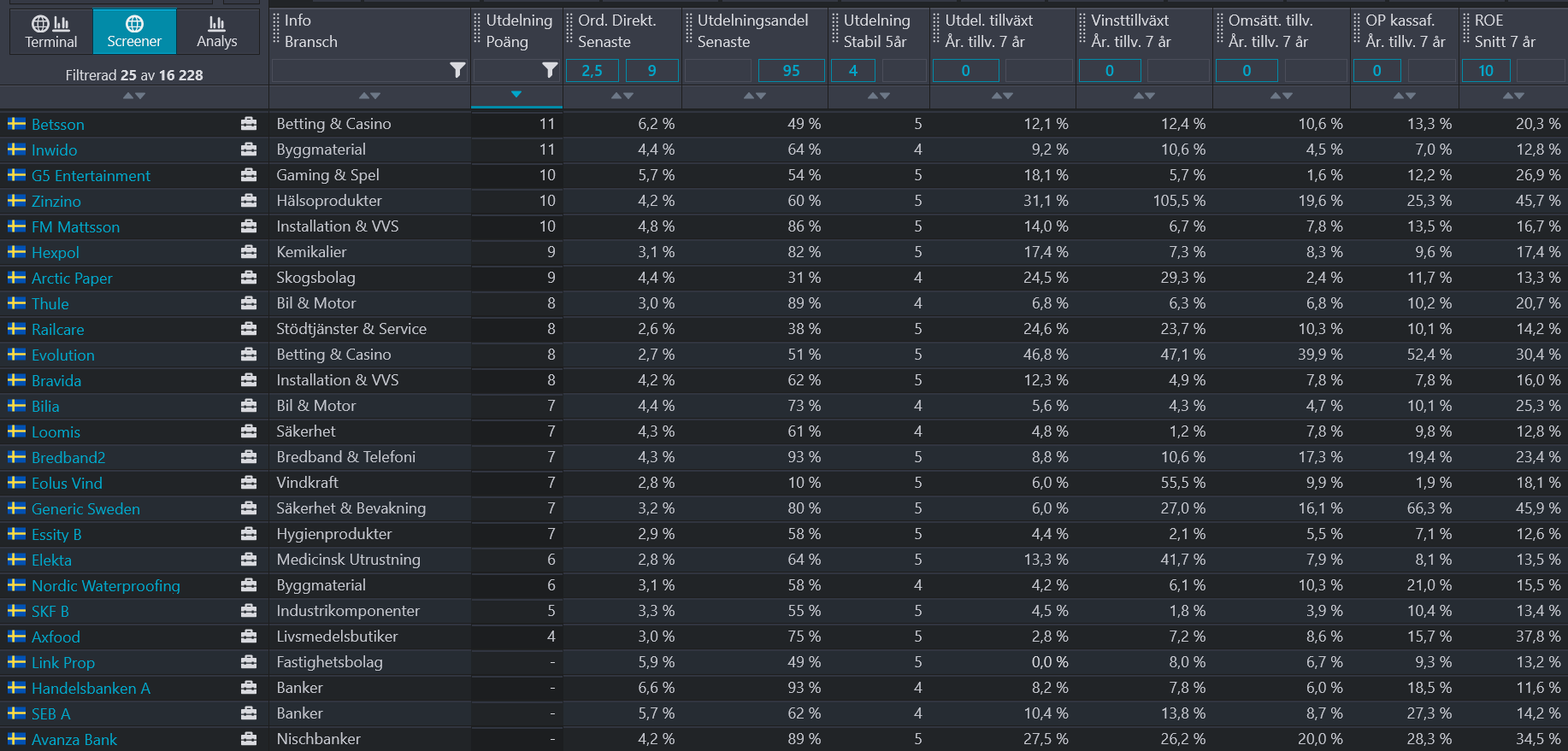 - Vinsttillväxt > 0 senaste 7 åren
