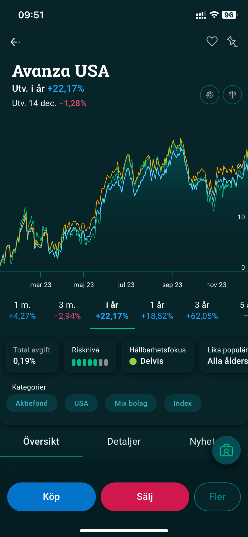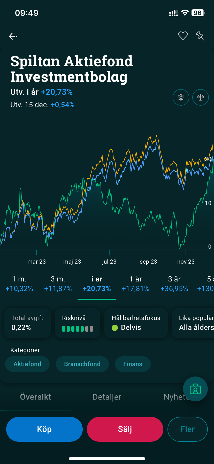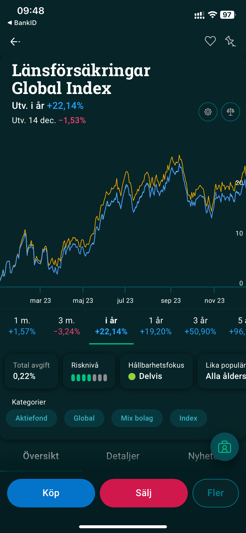 Hittills i år har ju en generell populär indexfond gått upp ungefär 22%, så lite bättre än det här året helt enkelt.