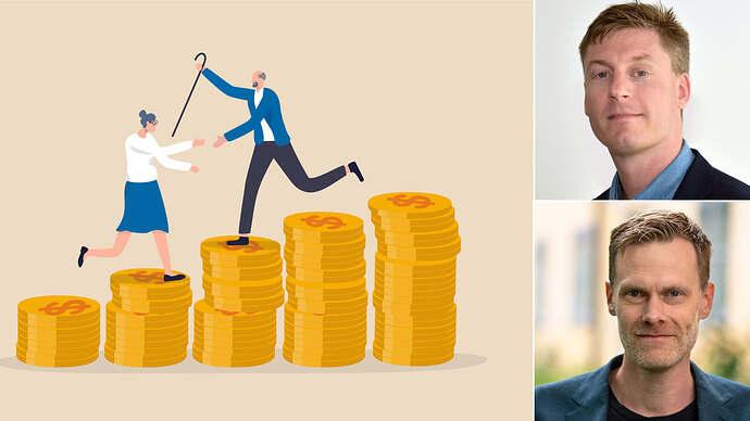 Själv tänker jag justera detta genom att gå i pension när jag har tillräckligt att leva på, dvs jag bestämmer mig för hur mkt jag vill konsumera som pensionär, och går i pension när det är så mycket jag har råd att konsumera. Vi får se om det blir vid 55, 60 eller kanske 75?