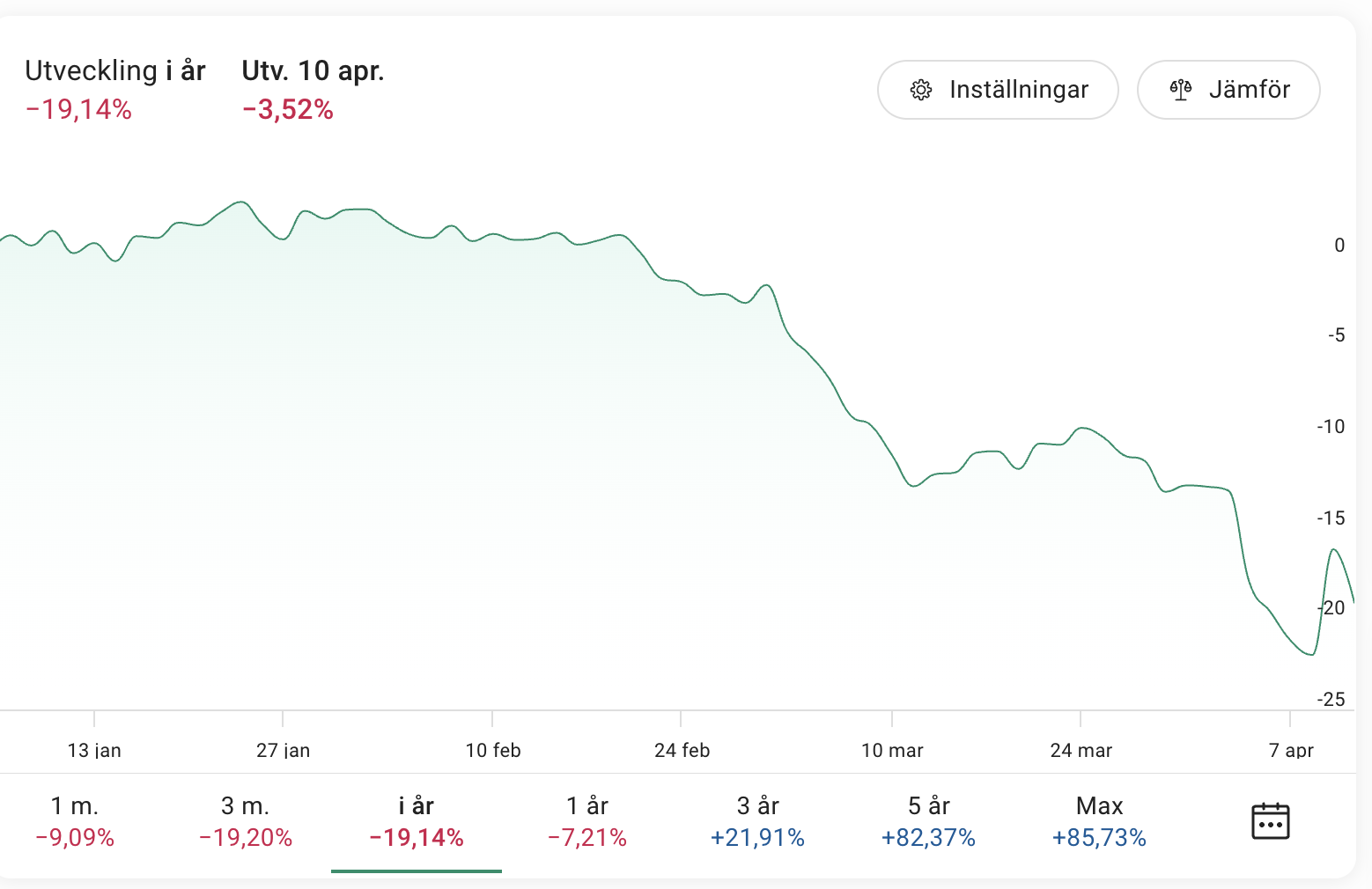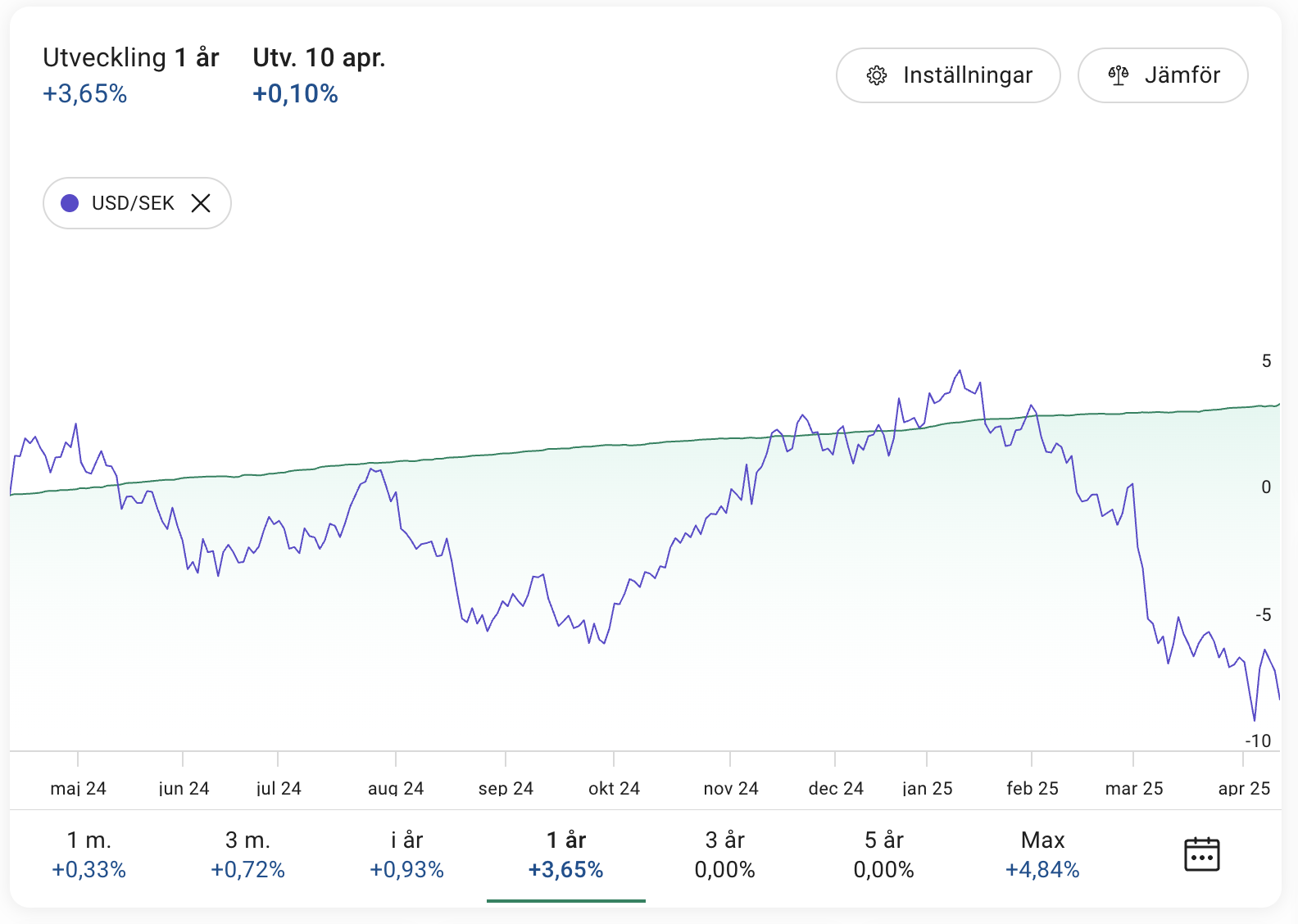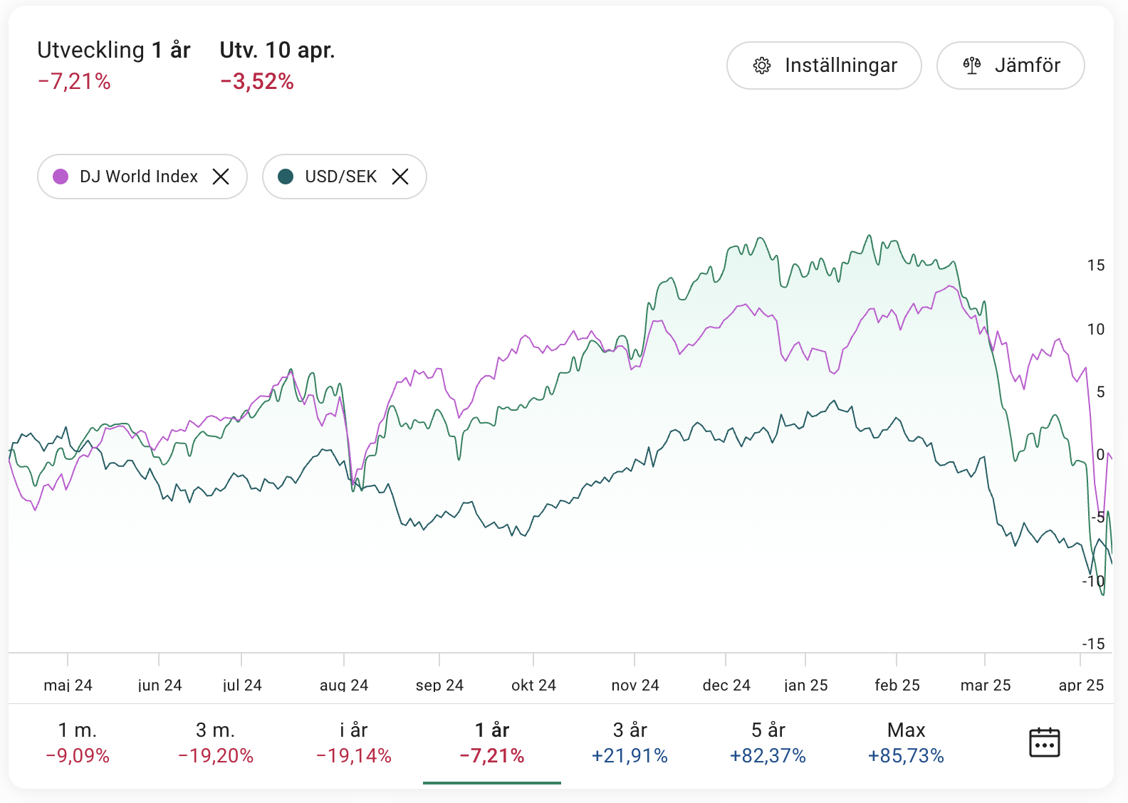 Det gör att grafen kommer exakt avspegla både antal kronor och procentuell avkastning som du får i SEK procent och SEK.