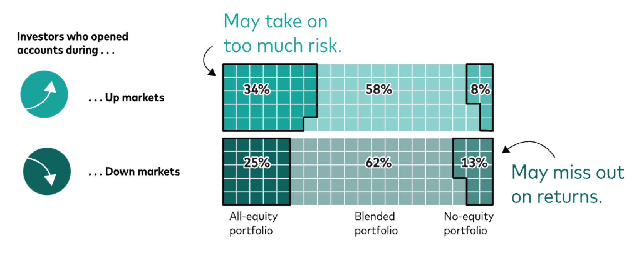 This is true even though they likely are younger and have a longer time horizon than those who started investing just a few years earlier, in the 1990s, when the stock market was generating strong positive returns.1 The consequence is that investors who started investing in down-market environments may miss out on excess returns while those who started during a strong stock market may take on too much risk.