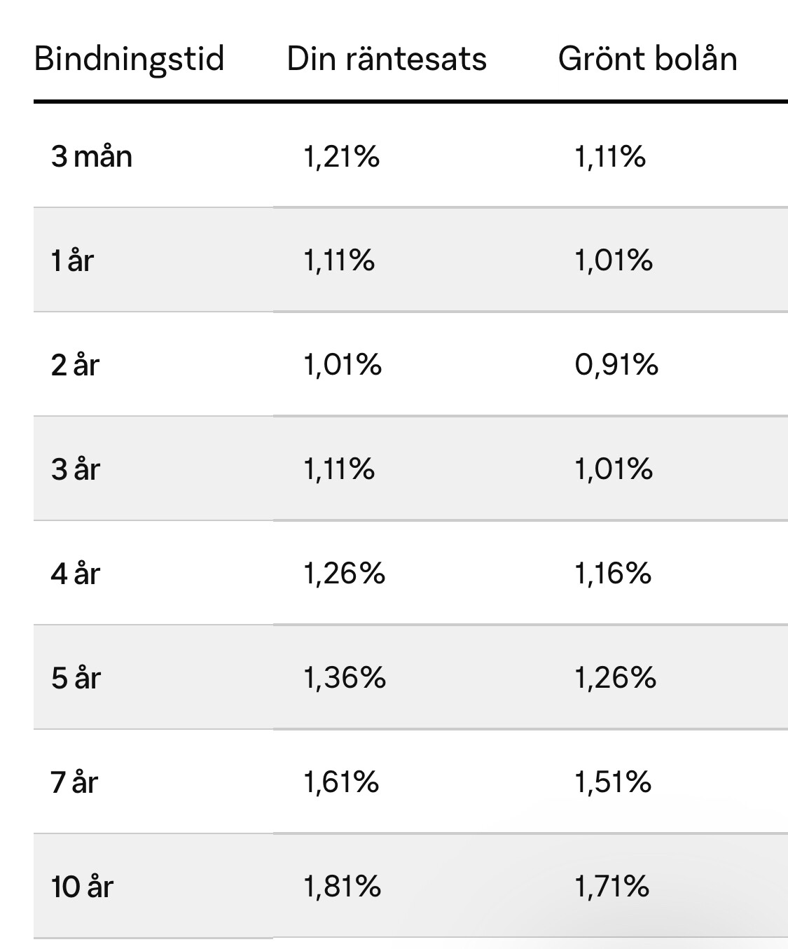 Tips är att benchmarka mot SBAB, tycker dom har väldigt svårslagna räntor på 2 och 3 år nu som flera storbanker inte kan matcha ens med helkundserbjudande.