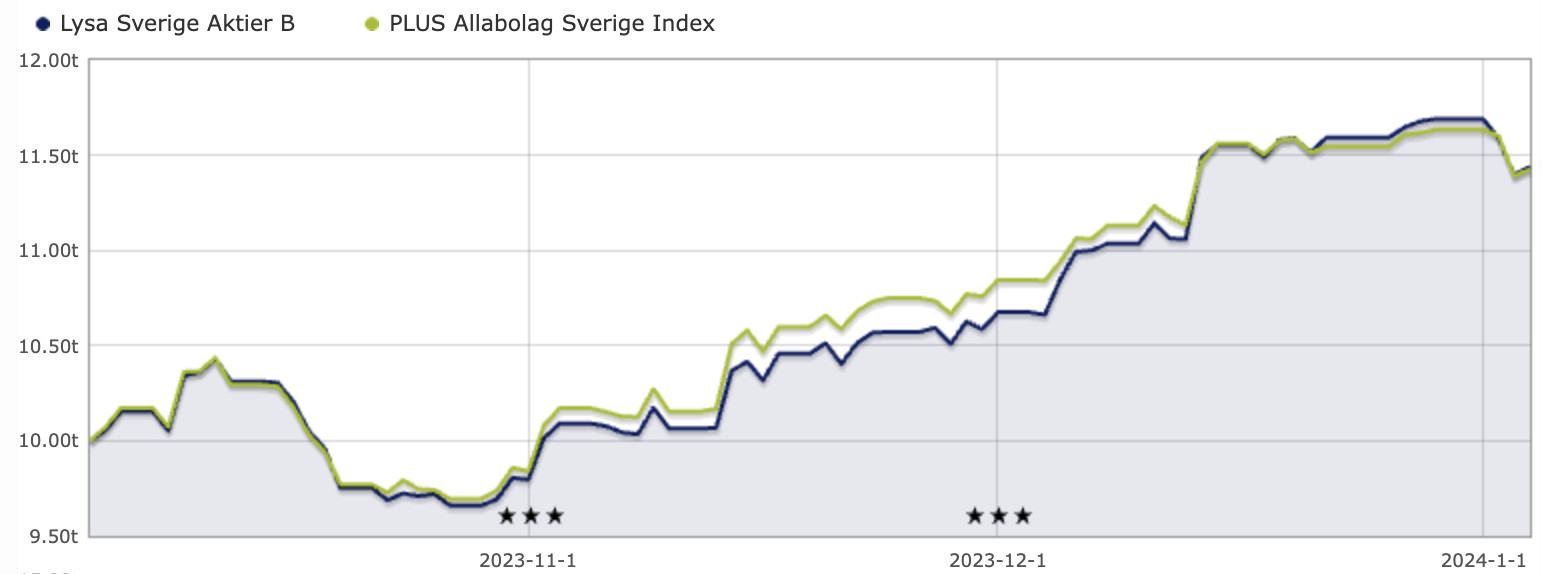 Den svenska delen av Lysa Bred har haft samma avkastning som Plus AllaBolag slutet av förra året.