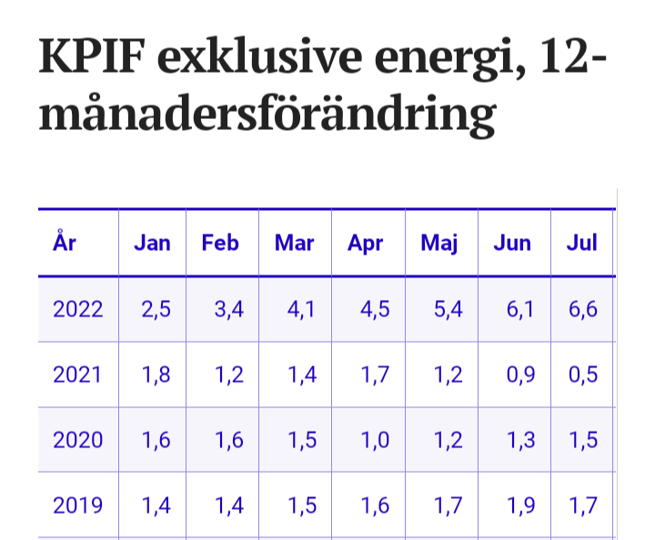 Jag förstår resonemanget men energimarknaden är fullständigt dysfunktionell, den liknar inte något annat framförallt för att det är ett monopol. Det är möjligen ett sidospår från själva inflationsdiskussionen men tycker ändå det hänger ihop. Jag kan inte välja något annat eller inget. Det skulle inte spela någon roll om vi gick ner 5% i förbrukning, priserna från Europas energislukande skulle likväl leta sig in i Sverige. Om ditt resonemang skulle stämma varför är då priserna på 7 kr/kw för mig i augusti när vi inte borde förbruka särskilt mycket i Sverige. Det kommer inte ske några mirakel annat än man från politiskt håll förändrar prissättningsmodellen för elmarknaden.