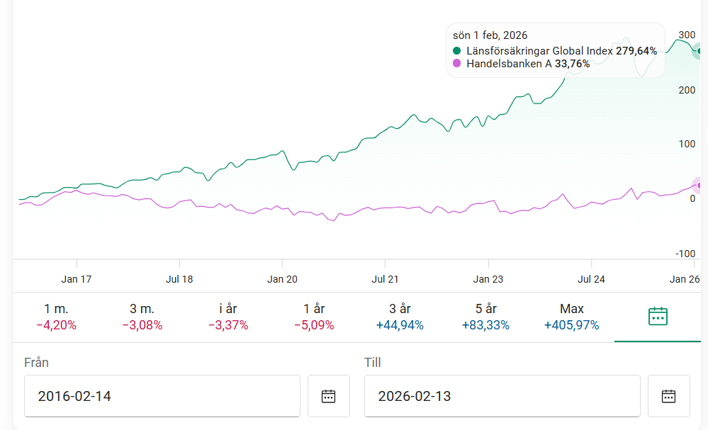 Dock så håller jag med dig att även om man reinvesterat utdelningarna så hade SHB knappast slagit LF global. Dock så kanske TS tror att många AI-bolag är övervärderade medan SHB är “rätt” värderad