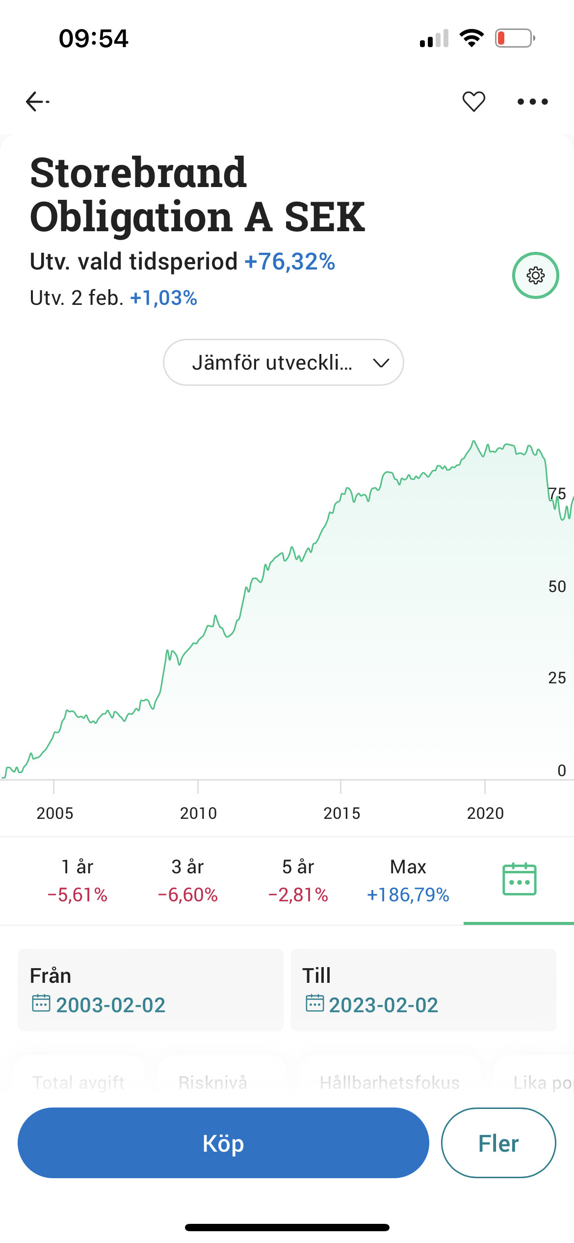 I min värld är det 20 år mellan 2003 och 2023. Och då sjunker CAGR till ca 2,9%. I och för sig förmodligen bättre än vad du fått med rörlig sparränta under samma tid.