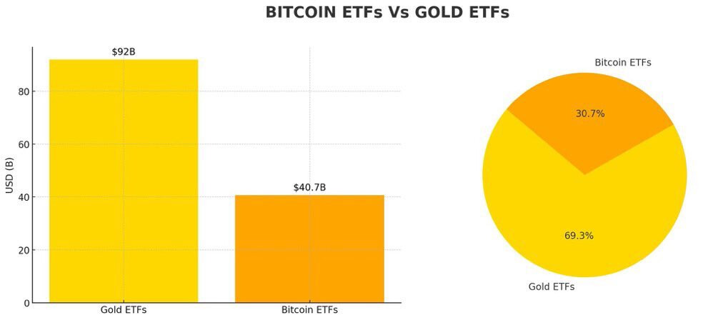 Även intressant att de amerikanska Bitcoin ETF:erna som existerat i 31 dagar redan håller ~$40 BUSD, jämfört med Guld ETF:erna som existerat i 7300 dagar och håller ~$92 BUSD. Tror ni många växlar guld mot Bitcoin?